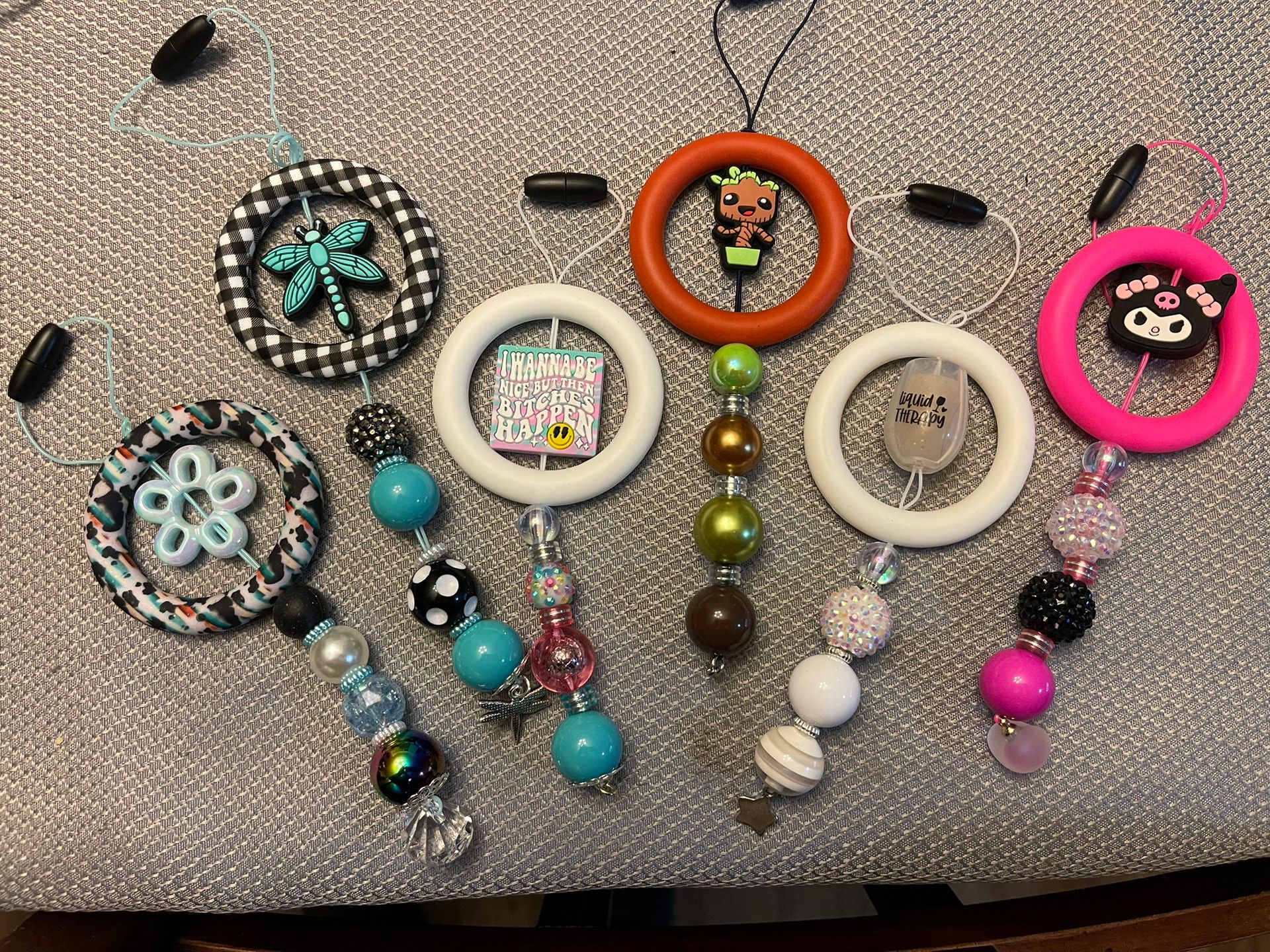 These are cute mirror hangers . They have clasps at the ends to attach it around your mirror or whatever else you hang it on .