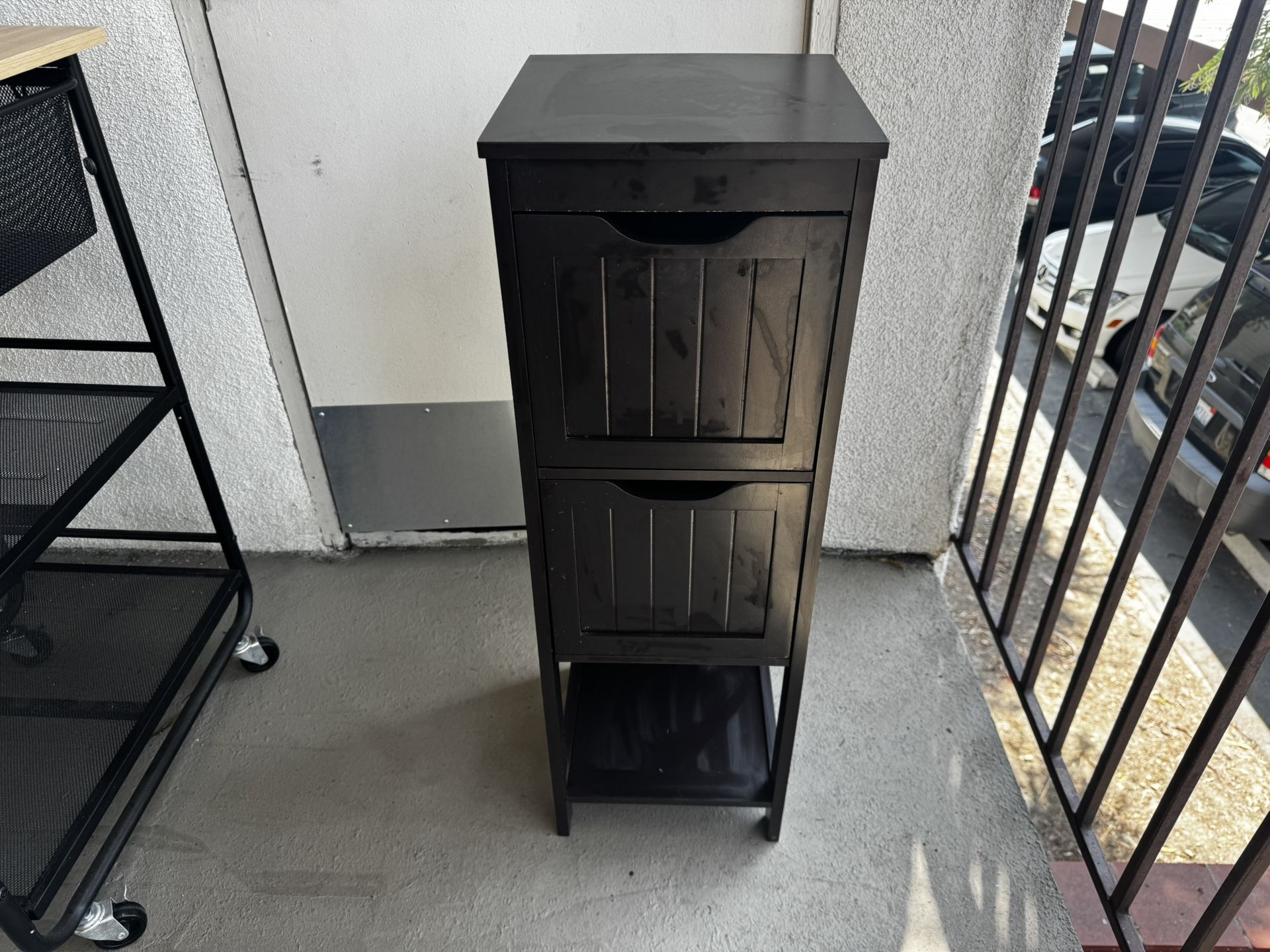 Selling a storage cabinet perfect for bathrooms, bedrooms or small spaces that need extra storage Condition: used but in good shape. Fully assembled. Message if interested, first come first serve.