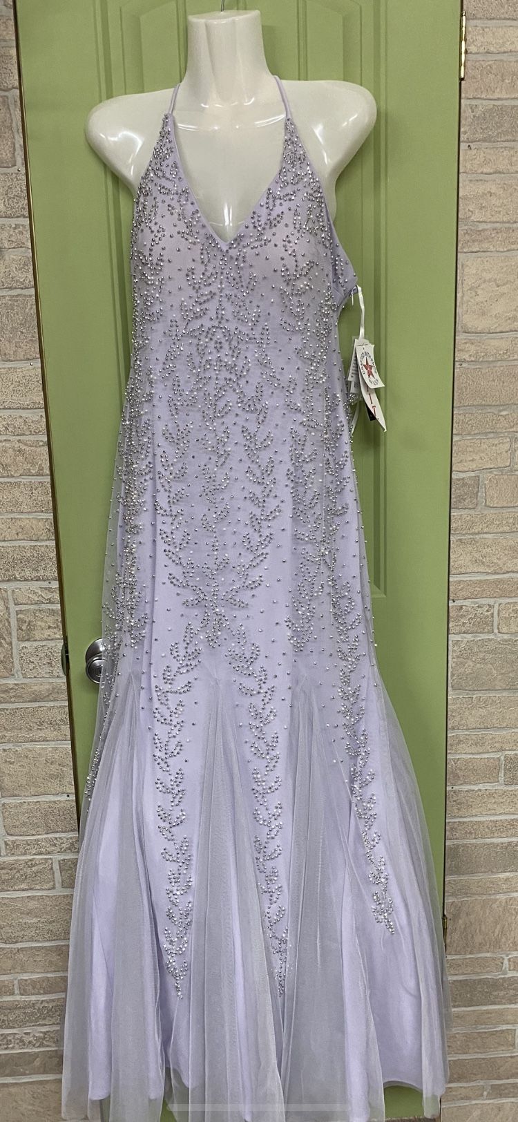 Size 14p. Lavender sequin encrusted beautiful. Was bought for my wedding but used another dress. Never been worn just tried on.