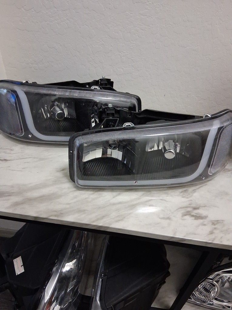 Led Headlights for a 2000/2006 sierra or Yukon..face is in good condition tabs on back are broke but can be fixed see pictures..this reflects price. $70 and pick them up