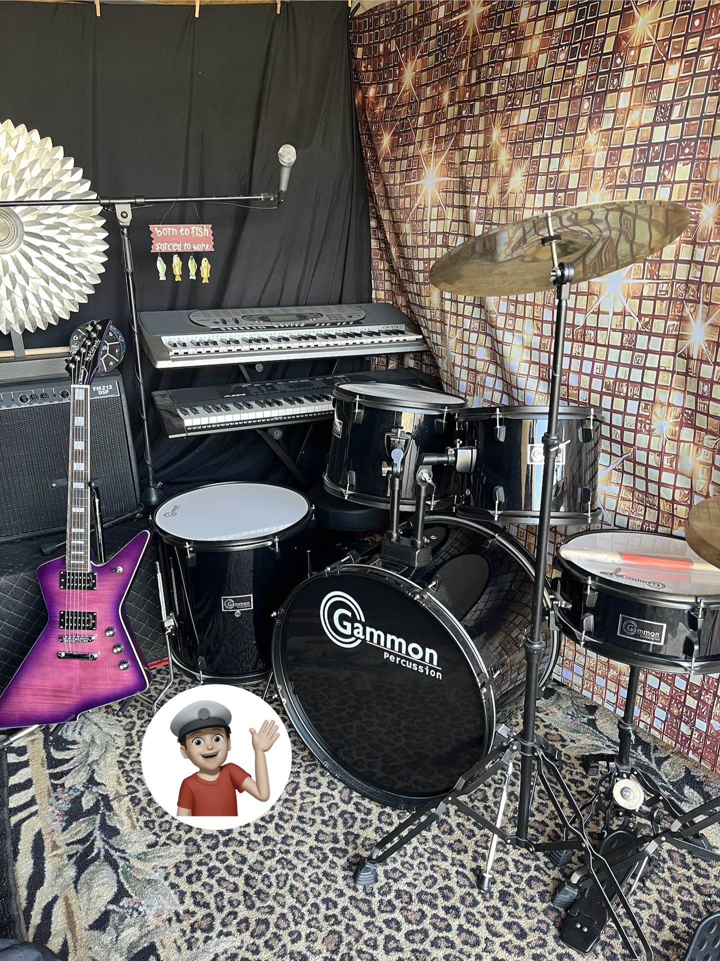 Full size Adult Drum Set COMPLETE! As-New!!! Triple Black, all black hardware. Includes everything including seat and sticks. No Rust-No Wrinkles. First come first served! Price is $249!