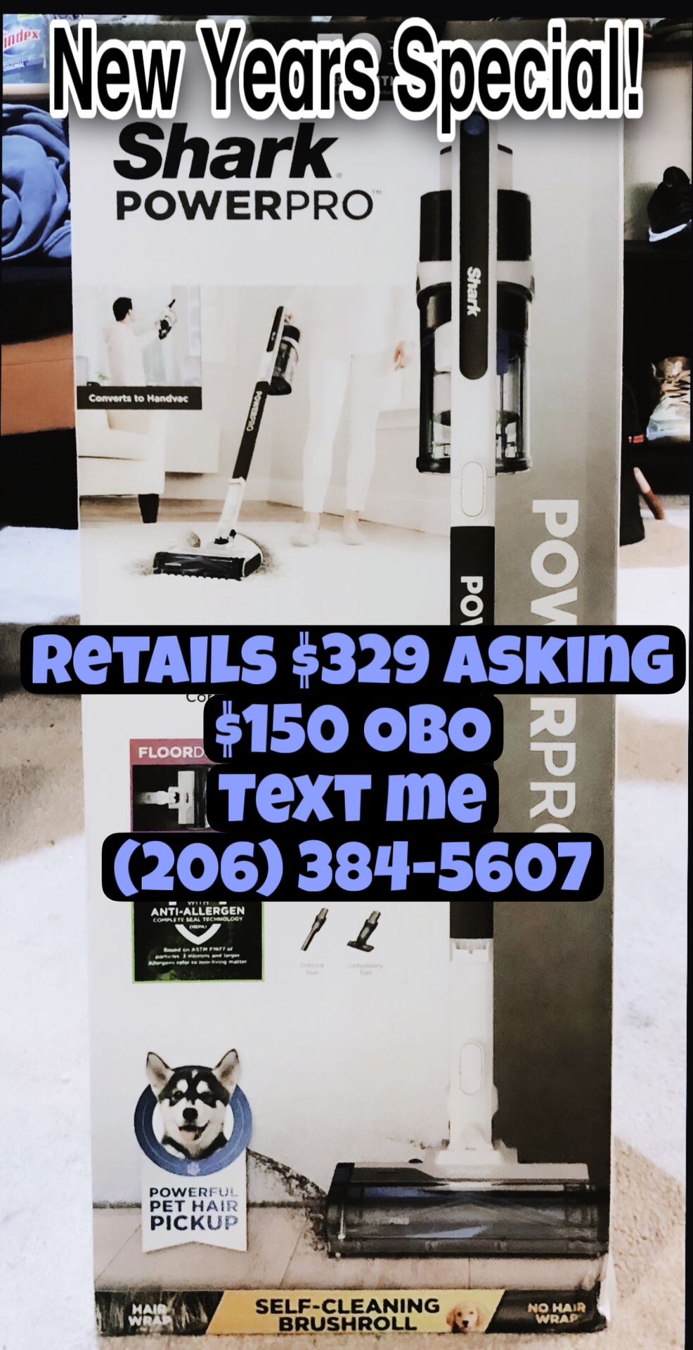 Model # IZ372HD Brand new Shark PowerPro Bagless Cordless HEPA Filter Portable Stick Vacuum Cleaner for Multisurfaces, up to 50 min Runtime in Black. π¦ Hypervelocity suction: provides incredible suction power and cleaning performance for everyday messes π¦ Floor detect technology: detects floor type and automatically adjusts brush roll speed for maximized performance on all surfaces - no switching of nozzles required π¦ No hair wrap: self-cleaning brush roll for powerful pet hair pickup with no hair wrap π¦ Hepa filtration and anti-allergen complete seal: captures and traps over 99.97% of dust and allergens, keeping them out of the air you breathe, based on ASTM f1977 of particles 3 microns and larger, allergens refer to non-living matter π¦ Up to 50 minutes runtime: for whole-home, deep cleaning, measured at the handsaw in standard mode π¦ Led headlights: for illumination of dark areas to easily spot dust and small debris π¦ Easily converts to a hand vaccum: with attachable accessories for cleaning of countertops, furniture, and hard-to-reach places π¦ Accessories included: 8 in. crevice tool and upholstery tool Retails $329 asking $150 OBO