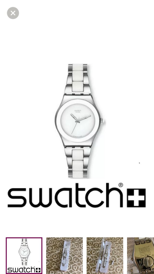 Stainless steel case with a stainless steel bracelet with white ceramic center links. Fixed stainless steel bezel. White dial with luminous silver-tone hands. No markers. Dial Type: Analog. Quartz movement. Plexiglass crystal. Pull / push crown. Solid case back. Round case shape, case size: 33 mm, case thickness: 9 mm. Band width: 17 mm. Jewelry clasp. Water resistant at 30 meters / 100 feet. Functions: hour, minute, second. Casual watch style. Swatch Tresor Blanc White Dial Ladies Watch YLS141GC. Excellent pre-worn condition with new battery installed and sale includes case & extra links. Sold out in stores and online.