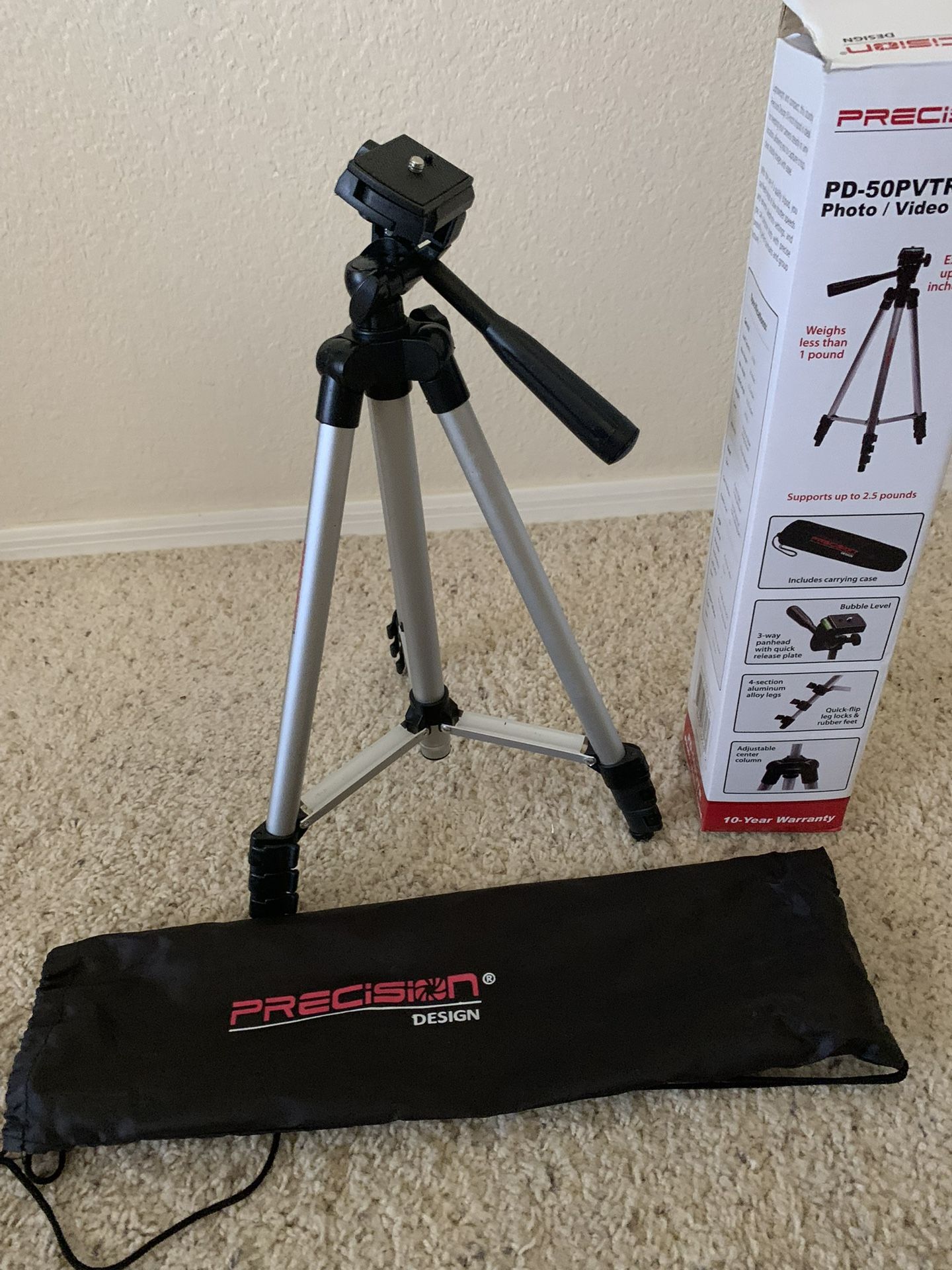 Precision Design Photo Video Tripod W/ Case