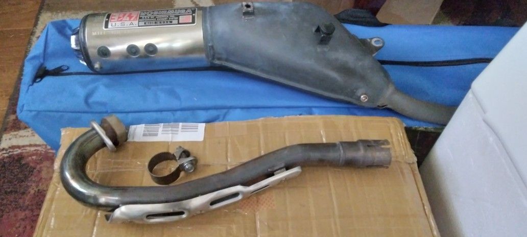 This is a Kawasaki OEM Full Exhaust System in excellent condition. It come of a always garaged 90% or more road dual sport with under 2k miles. The metal yoshi decal is easy to remove if you choose to take it off. It not drilled in. Compare prices on ebay and it's a great deal for the condition and the price. No leaks never had to be repaired I don't see even a ding anywhere on it. Full Exhaust! Taken Off my 2013 Kawasaki Klx250s dual sport but look it up ut will fit other bikes. Buyer responsible for making sure this Exhaust will fit. Thank you
