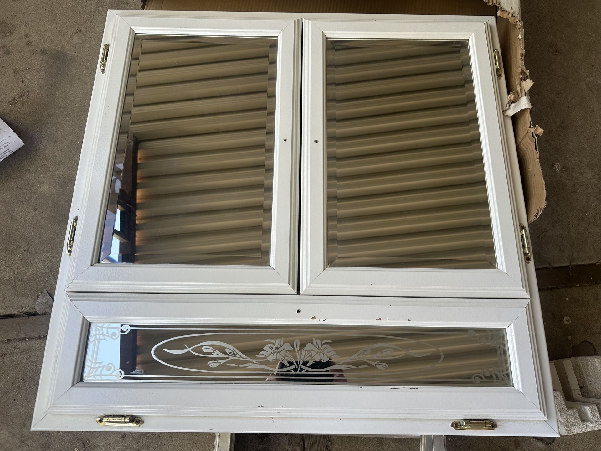 New!! Bathroom Medicine wall Cabinet, White. , 30” wide by 30” tall , Compare New in Stores at $99 , Has a couple very small knicks towards the bottom, New !!