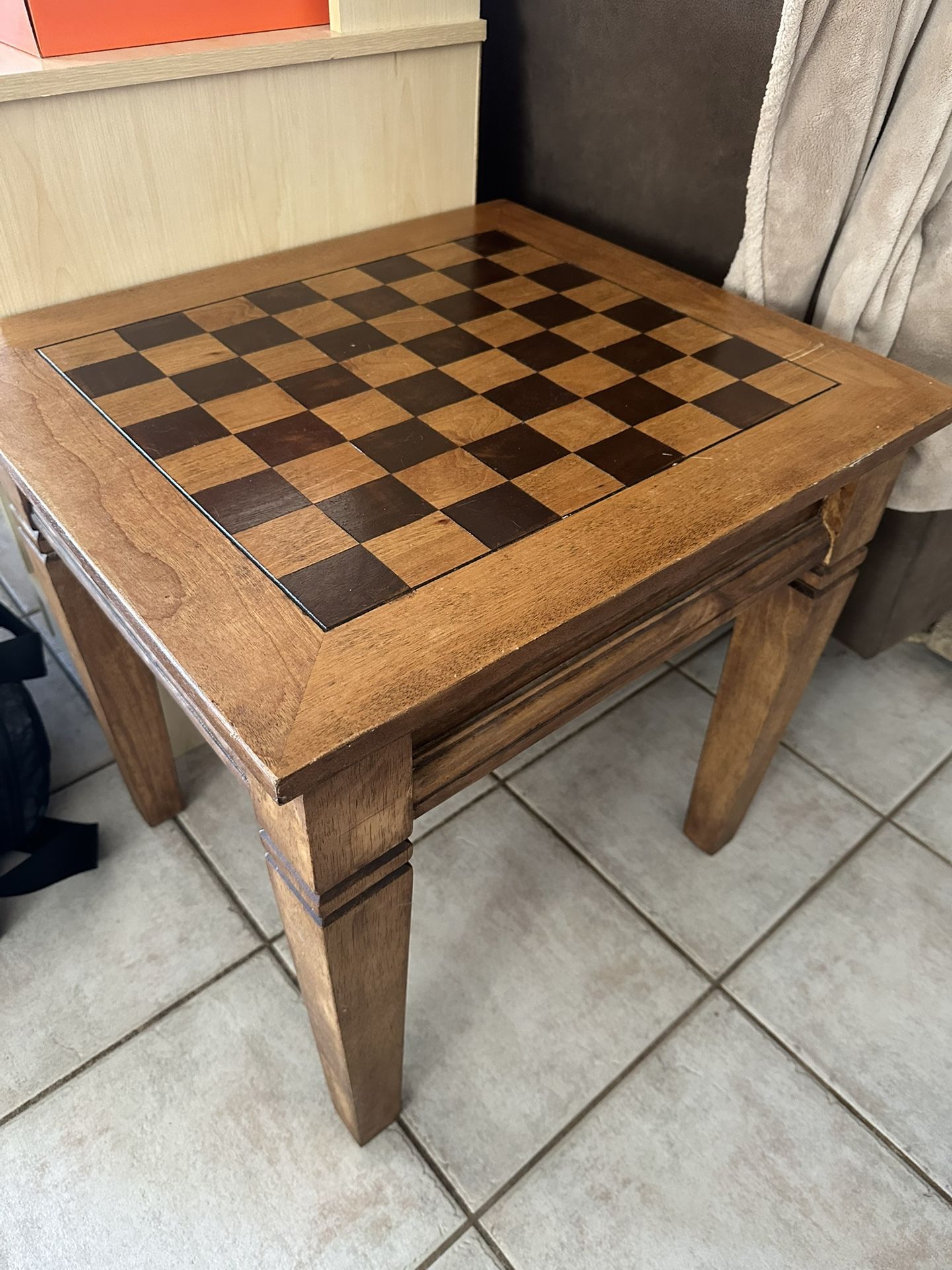 Solid Wood Coffee Side Table Chess Board