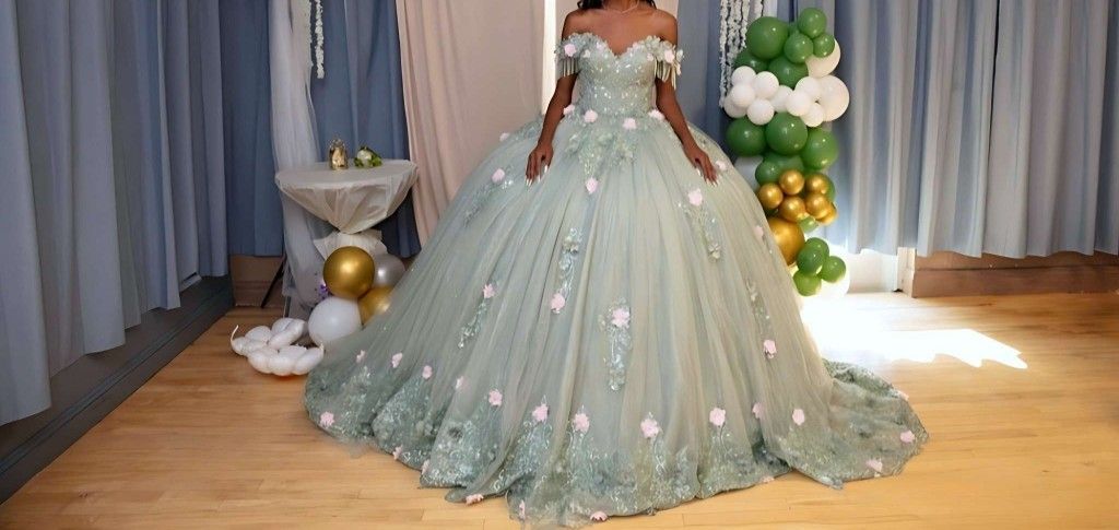 Worn once for sweet Sixteen. Made by a designer in Turkey. Sage green. Size 2. I paid $1800 for it. Asking for $700.