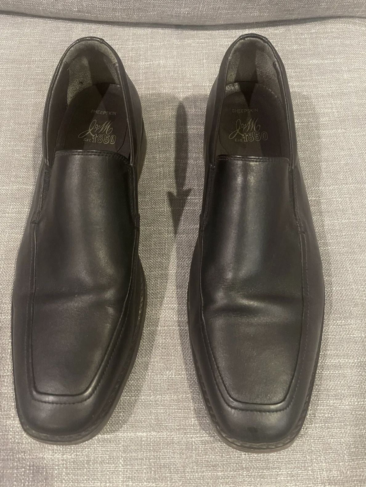 Pre-owned: overall in great condition… Gently Used Johnston & Murphy Mens Slip On Black Leather Oxford Dress Shoes Loafers Tag Size: 10.5M Color/Pattern: Black Features: Comfort, Padded, Cushioned, Lightweight Originally: $175+