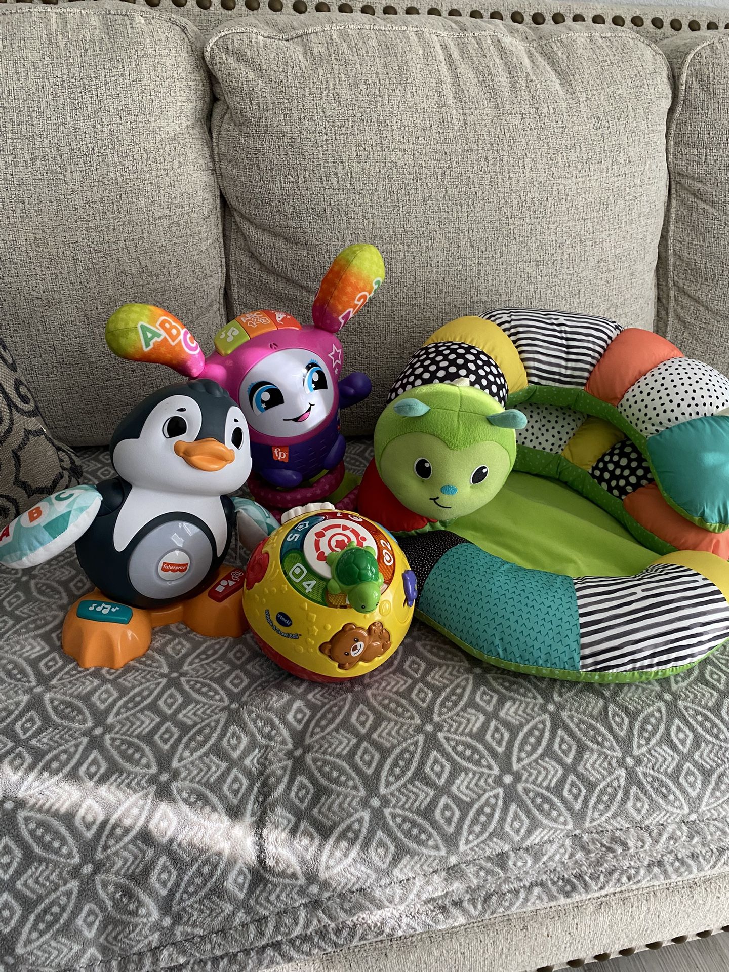 Sit up worm is brand new. Just no packaging. Other toys have only been played with couple times. Is new condition. All work! Selling all together. Rather not separate.