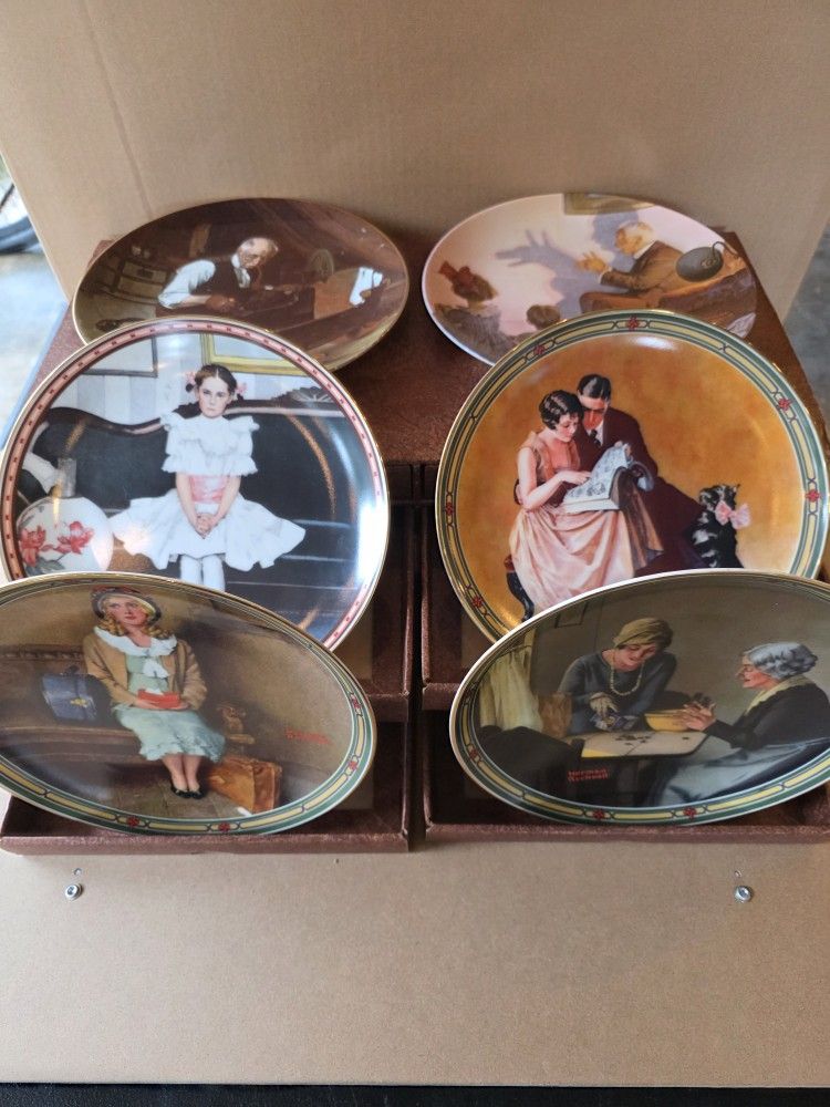 Total of 6 plates of nostalgic, decorative items featuring scenes of American life.