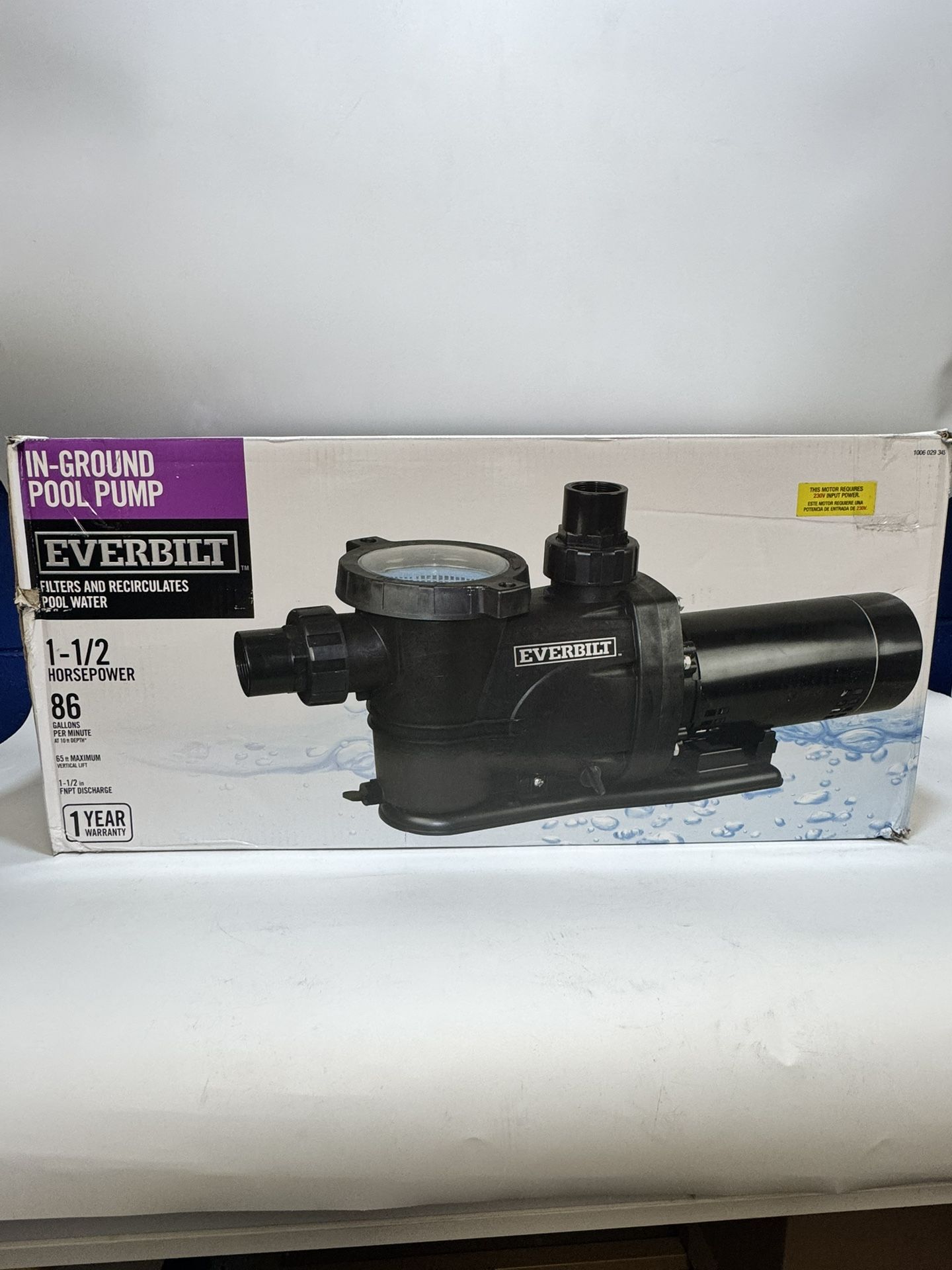 ( Brand New / Never Used ) *** Retail Price with Tax $634 *** *** Our Price $350 *** Payment Method: Cash, Zelle or Credit Card with 8% additional fee 💳 ‼️I LOST THE COVER LID ON THE LAST PHOTO REPLACEMENT WILL COST UNDER $40 AND I PRICED ACCORDING ‼️ Description: The Everbilt 1.5 HP 2-Speed Pool Pump is designed to work in permanently installed inground and above ground pools. The pump is constructed of durable polymer that resists corrosion. It is powered by a heavy-duty 230-Volt single-voltage, fan-cooled motor. The industrial size strainer basket collects debris and allows for a longer time between cleanings. DOE compliant motor operates at both high and low speeds High speed - 96 GPM, 1.5 Total HP / Low Speed - 48 GPM, 1/4 Total HP 230 Volt open drip proof motor with automatic thermal overload protection Viton pump seal provides resistance against chemical imbalances Includes two 1-1/2 in. Union Connectors for quick and easy installation and servicing 1-1/2 in. NPT suction and discharge size Installation and wiring should be performed by a certified electrician or a qualified pool service professional Requires an External Switch or Timer/Controller, not included