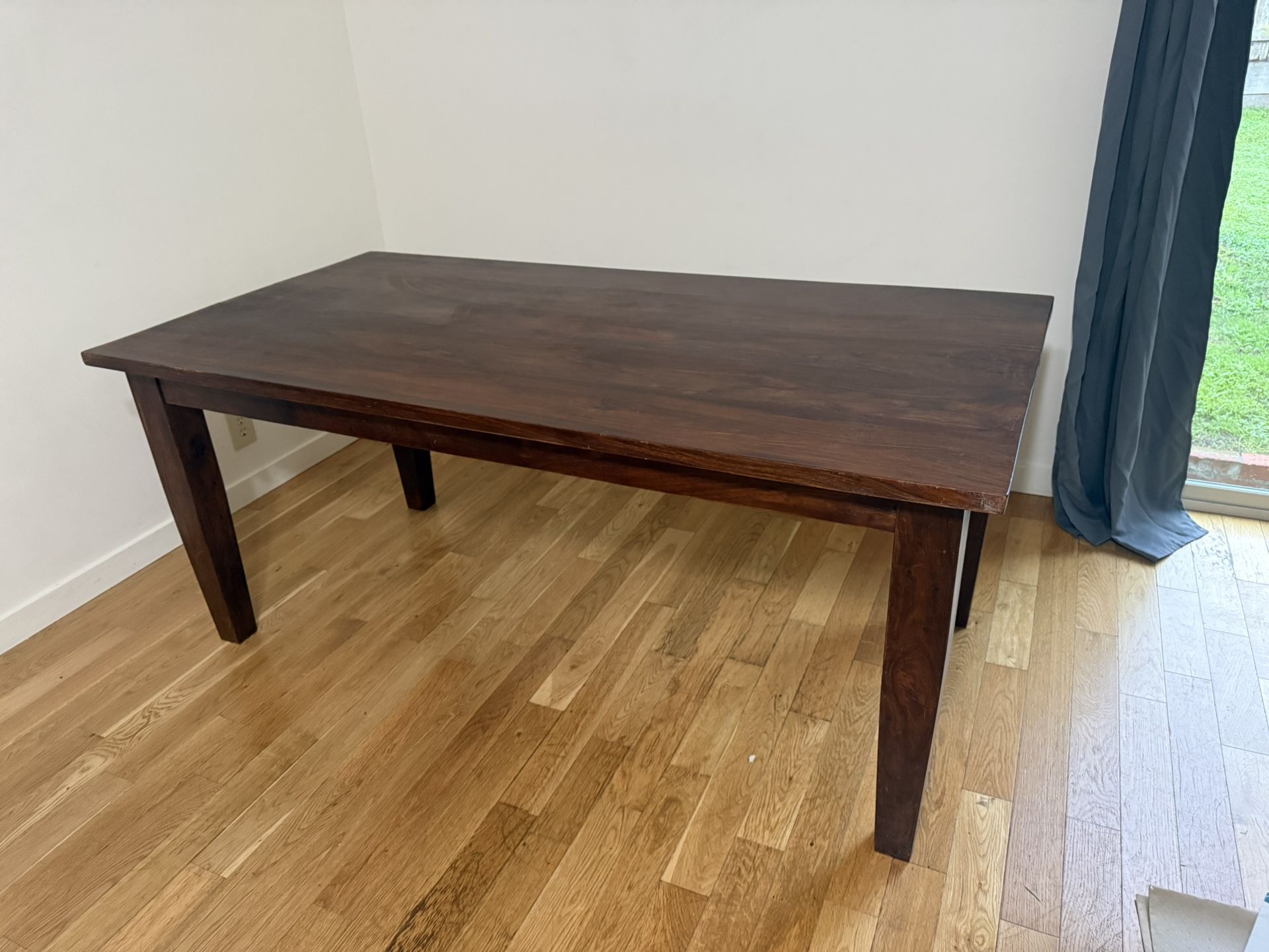 Excellent condition. Beautiful dark wood. Located in Richmond Annex. Legs can be removed for transport. 71” long x 36” wide 30.5” tall