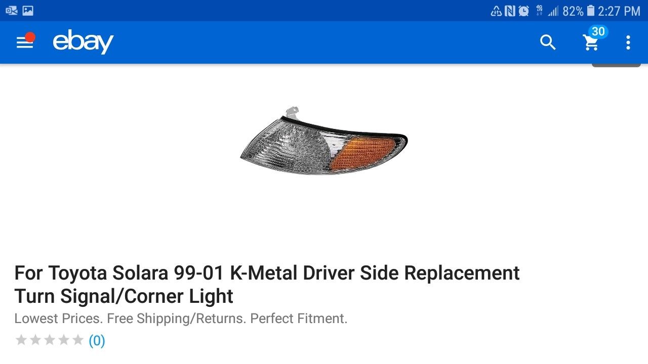 Brand new in box 1999 -2001 Toyota Solara front driver side turn signal corner light len