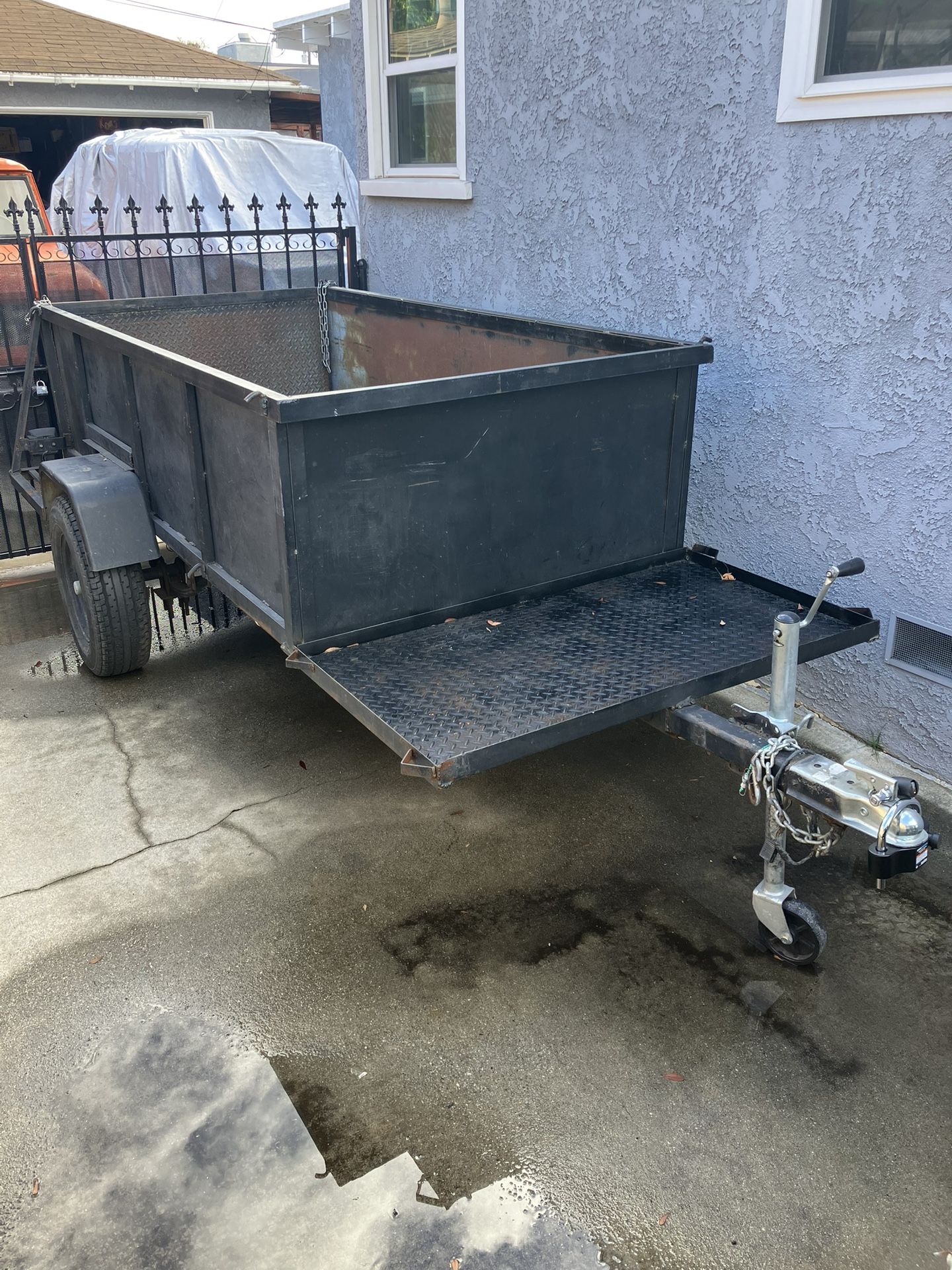 2” ball with security lock and latch lock with keys. Spare tire mounted under tub. Lights in working order. Tailgate articulates.