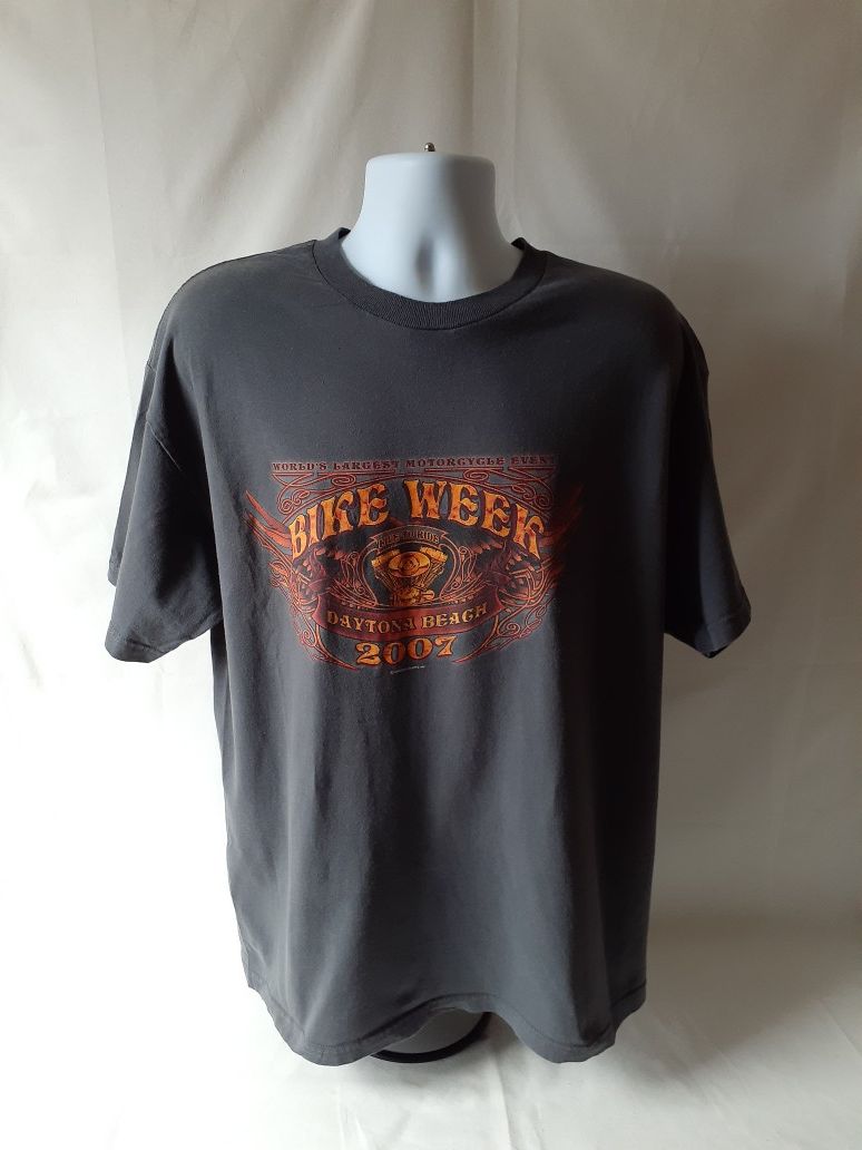 Bike Week 2007 Daytona Beach mens short sleeve t-shirt size XL.Laid flat the length is 30"the width from pit to pit is 23"and the sleeve length is 8".Pre-owned and in excellent condition from a clean and smoke-free environment.Thank you for viewing this item. B50 55 2