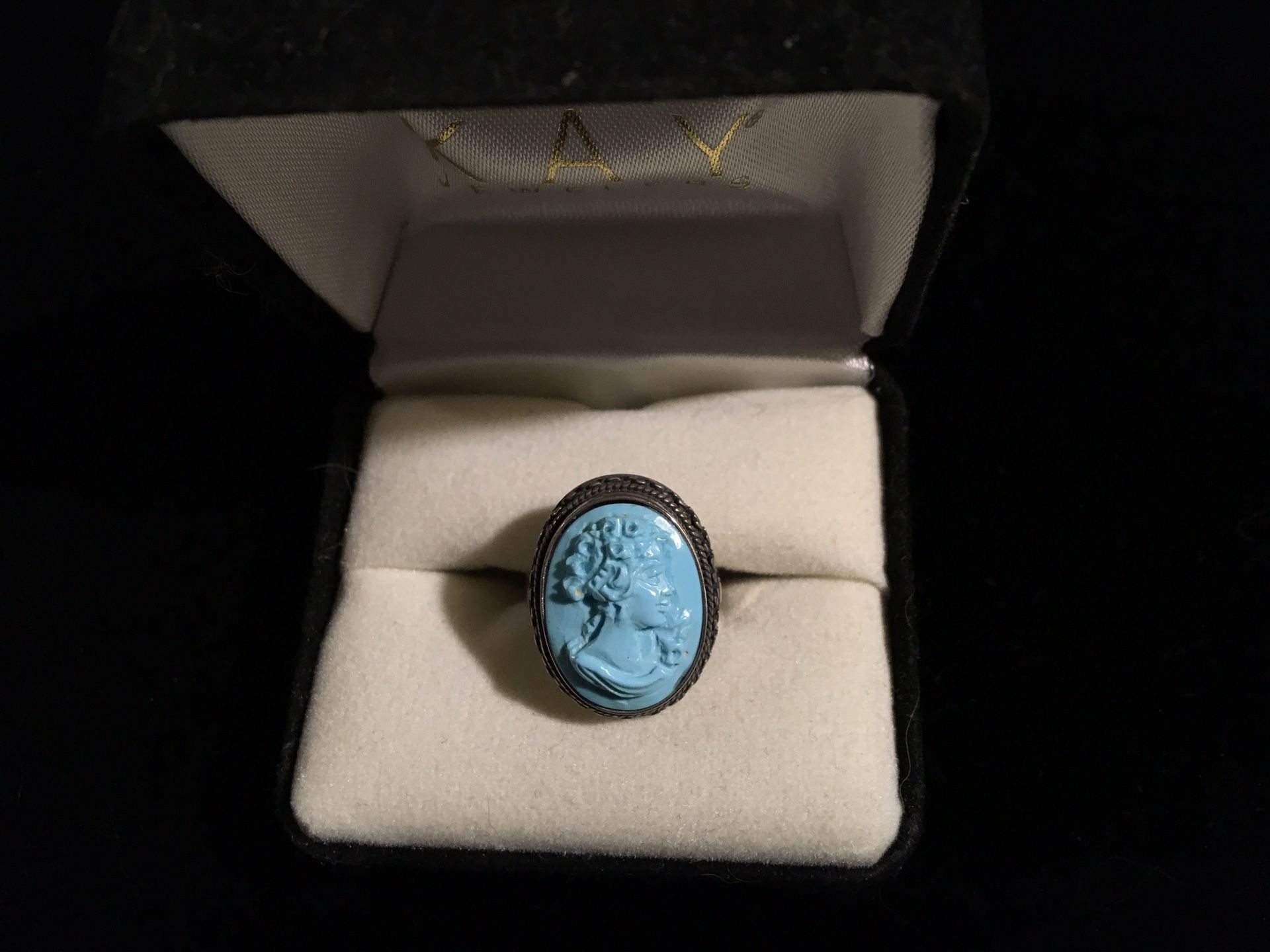 Sterling silver blue cameo ring with antique finish. Size 6.5. I take my own PayPal and mailing is extra.