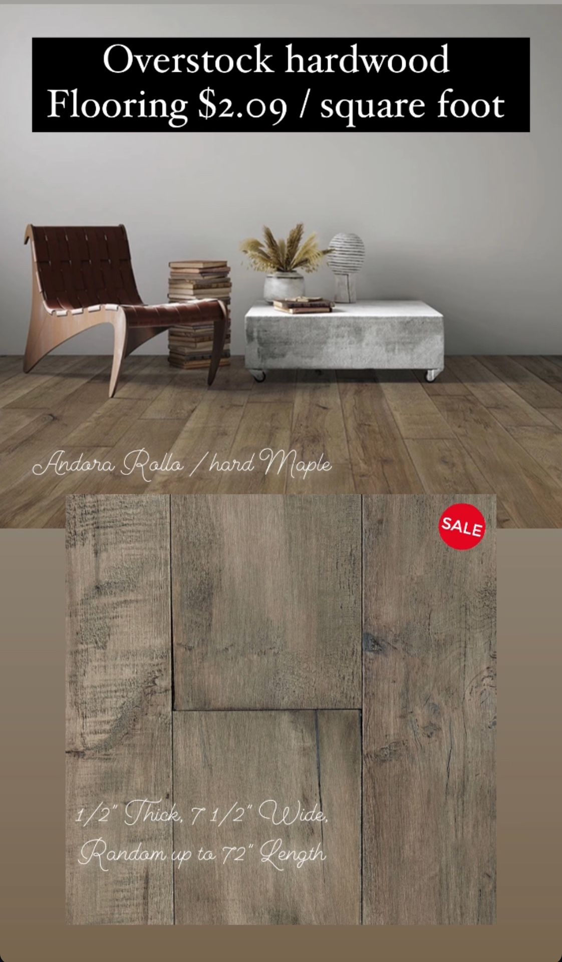 Hardwood flooring / $1.99 /SF Over 1,500 square feet minimum Graceful Elegance collection tile $1.69 /ft Wood look tile $.99 / sf Dm for availability “Delivery available “