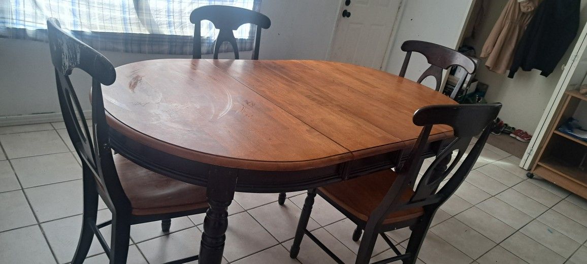 Dining table all wood has some paint on them and marks but with some TCL its a great table also expandable