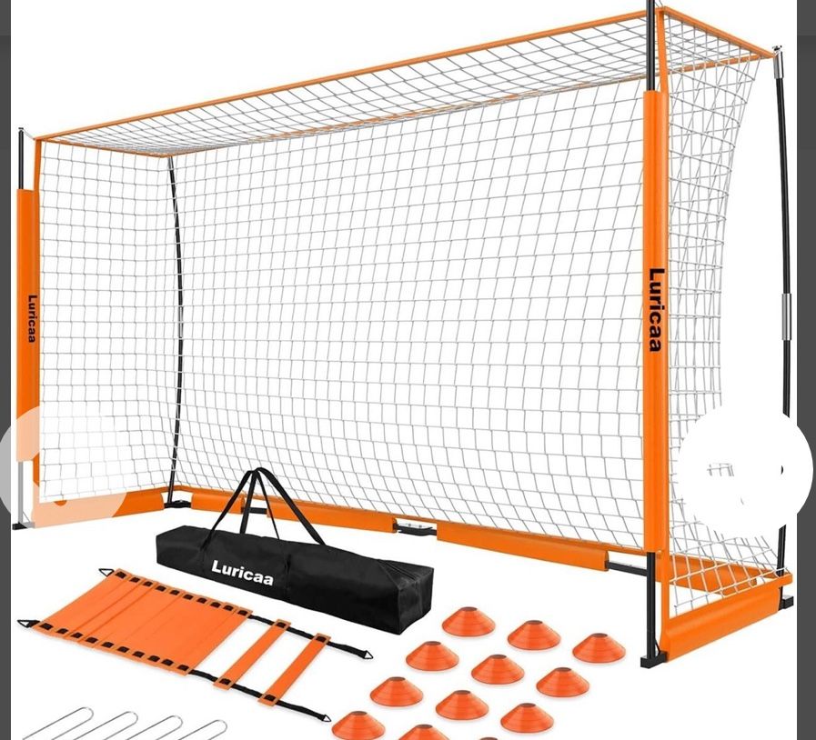 PR 227 $110 12 6 ft Collapsible Portable Soccer Goal Net Description Title: $110 12 6 ft Collapsible Portable Soccer Goal Net Condition: New - Open Box Damaged?: No In Packaging?: Yes Assembly Required?: Yes Star Rating: 5.0 Missing Parts?: No Functional?: Yes Brand: Luricaa Notes: New In the box Model: Soccer Goal Net Premium Soccer Equipment: The frame of the 12 6ft portable soccer goal is supported by robust metal tubes and flexible fiber rods that provide good cushioning. The soccer goals net is made of knotted anti-tear material to extend the service life. Stable Structure: This portable soccer goal features a heavy metal base and is equipped with four U-shaped ground stakes, which can enhance the stability of the goals for soccer and ensure that it remains stable during the intense game.