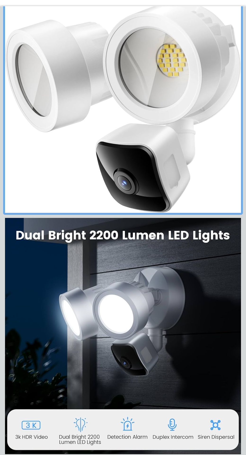 Wired Floodlight Camera with 3K UHD | 2200-Lumen | Motion Sensor, Color Night Vision, 105dB Siren, 270º Wide View,2-Way Audio (2025)