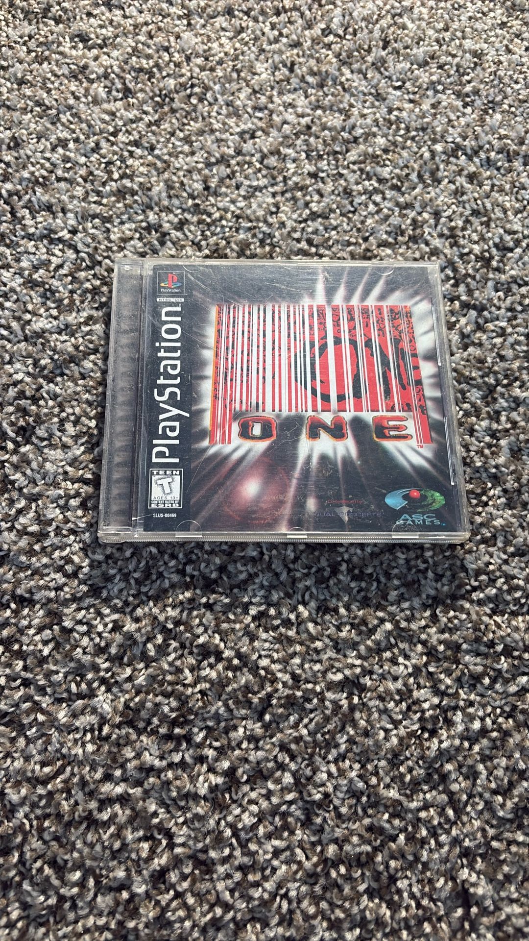 ONE for PlayStation 1. Disc is tested and works. Includes original disc, case, front cover art, and manual. Stylish arcade shooter with anime inspired visuals. Case shows light wear from age see photos.