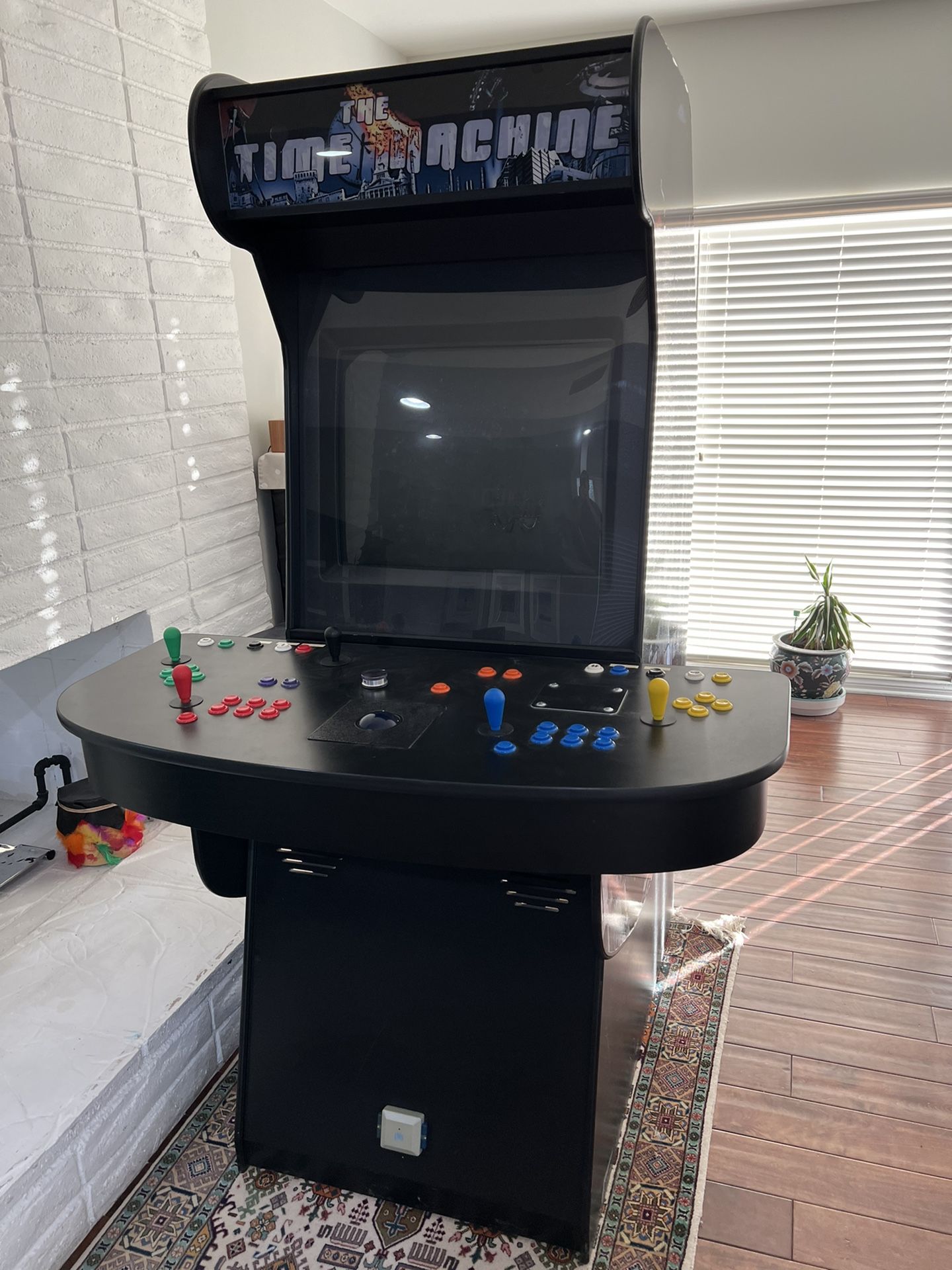 Complete 4 player arcade cabinet, with Raspberry PI 4B and 400 GB drive, tons of system emulators and games, and vintage arcade monitor. If you're looking for a ready to go, complete arcade cabinet, this is it. Everything you see in the pictures in included. The overall cabinet measurements are approximately 77" high, 48" wide, and 50" deep. The monitor is a Wells Gardner, model #27D9200. This is a very hard to find arcade monitor. On the back of the cabinet, there's a single power switch that turns everything on, along with a volume control knob. The marquee is lighted, and there are speakers on top and bottom. The control panel is massive, measuring about 48" wide and 21" deep, with plenty of standing and elbow room for 4 players. Players 1 and 2 each have an 8-way joystick and 7 buttons, and players 3 and 4 each have an 8-way joystick and 4 buttons. Along the top, there are both credit/coin-up and start buttons for all four players, plus two more buttons that can be used to pause or quit games. There's also a 3" trackball and a spinner, with 2 buttons next to the spinner. And finally, an additional joystick and a few more buttons are scattered around the panel. All of the buttons and joysticks on the control panel are hooked up to an Ultimarc controller, I believe it's the I-Pac 4. The trackball and spinner are separately wired. There is also an input jack on the lower front of the cabinet, and I believe that is for plugging in old PlayStation (and maybe other systems?) controllers. And finally, there's an additional wired controller, looks like a Super Nintendo version. Included is a Raspberry Pi 4B, in a custom case with a fan. The 400 GB card is fully loaded with Retropie running all the emulators and games you can imagine. There are over 50 systems and nearly 24,000 games included. I can e-mail a system list and other general info if interested. Everything turns on and works fine, every button and control works, and the monitor looks great. I can provide videos if requested. One thing though - the control panel needs to be re-mapped. The cabinet originally came with a PC. But when I switched over to a Raspberry Pi, it didn't fully recognize each and every button and control. So the Raspberry PI needs some software (called WinIPAC IPD) installed, which will allow you to map the controls any way you want. This software is readily available on Ultimarc's site, and it's easy to figure out. There are tons of videos online that can lead you through it. This thing is huge, and it's very solid and heavy. It must be picked up in Gardena. I do have a forklift, so it should be an easy pickup. Everything is being sold as-is, and I'm not responsible for the ability to get the control panel up and running properly, or for how well any system or game works. If you know anything about computers and emulation, this should be an easy setup and update. Send a message with any questions, or requests for more pictures or videos of anything. Thanks!