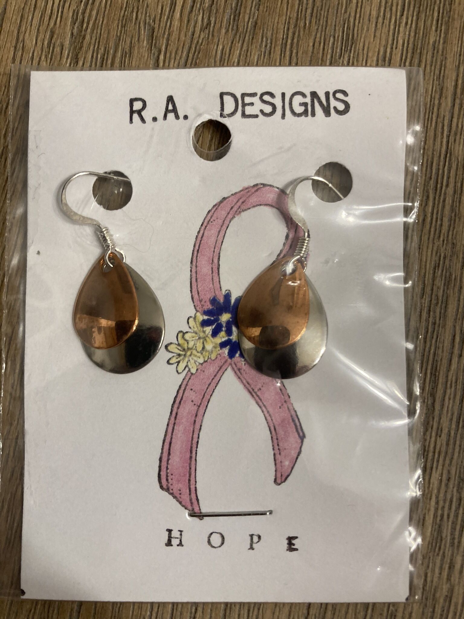 Earrings made with teardrop shaped fishing lure spinners set on silver ear wires Color: copper and silver nickel Light weight Made by me