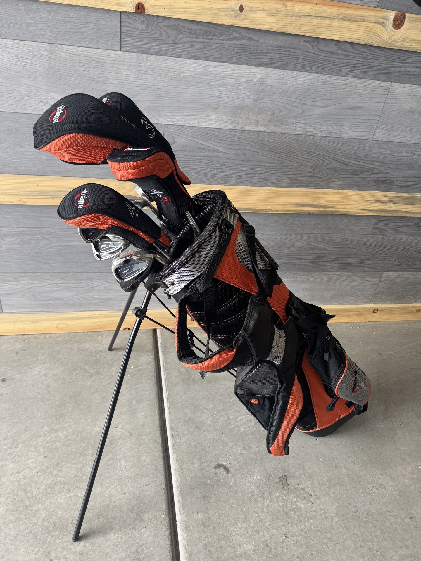 Barely used at a driving range one time. Most of the clubs have never been swung.