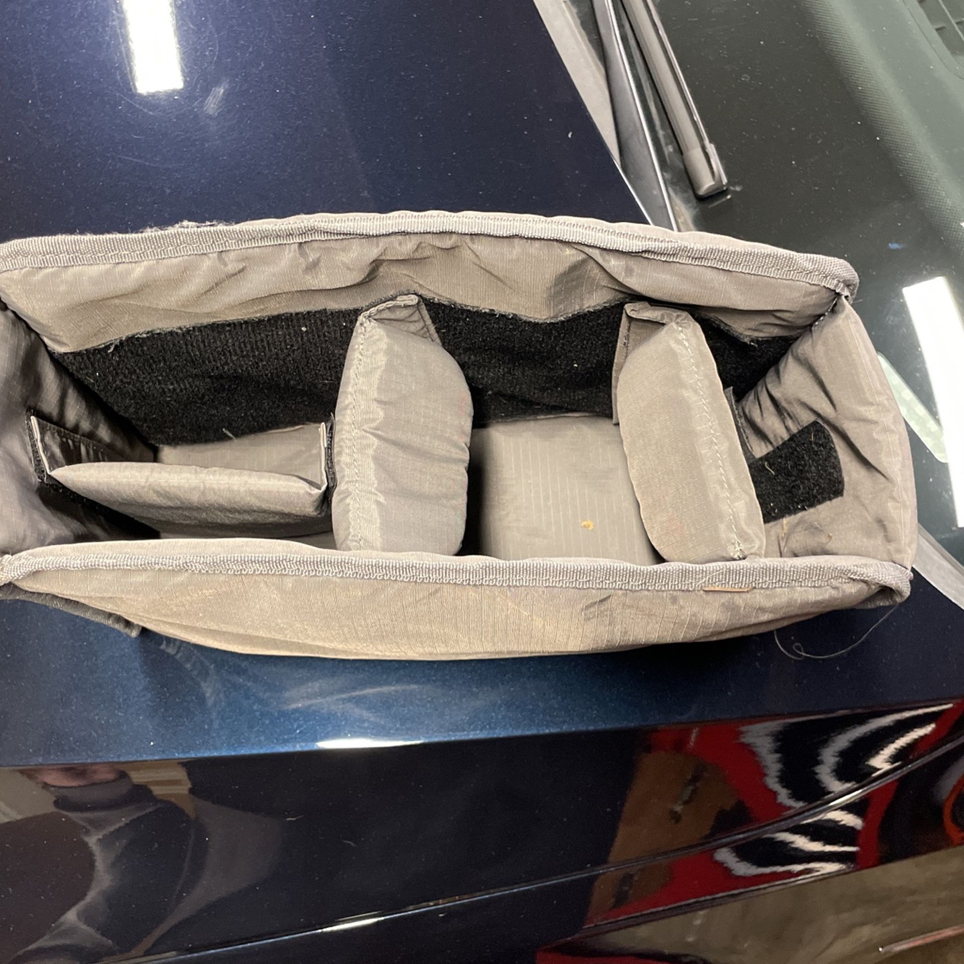 Soft pack insert style camera case. I used it inside a messenger bag, worked perfectly I just quit photography. Adjustable Velcro dividers.