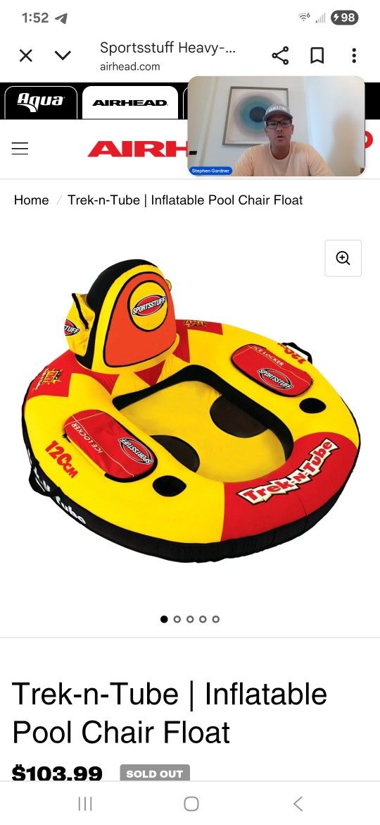 Excellent Condition Sportsstuff Trek-n-Tube Inflatable Snow / Boise River Pool Chair Float - Heavy-duty Nylon / Polyethylene Foam. 1-Rider lounge shaped pool float Includes two zippered 6-pack coolers Molded cup holder included
