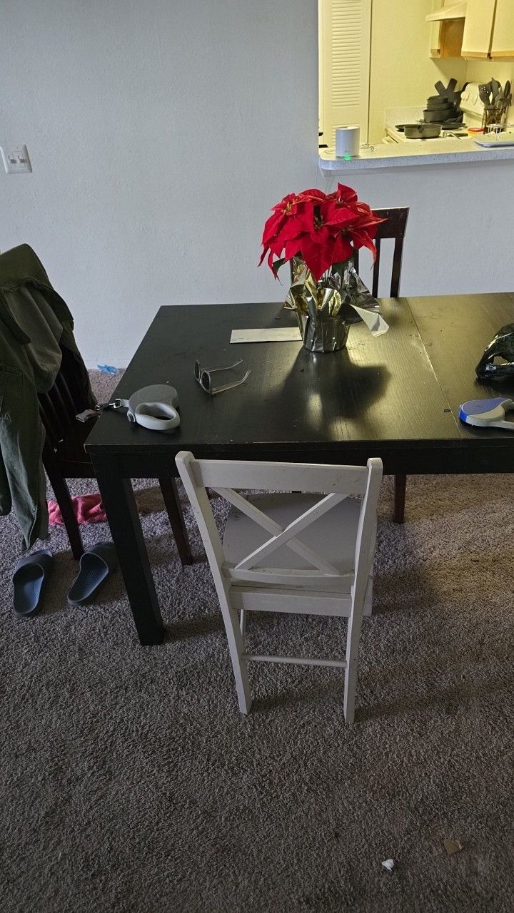 Normal wear and tear. Extends out and comes with 3 dining chairs. You haul. OBO