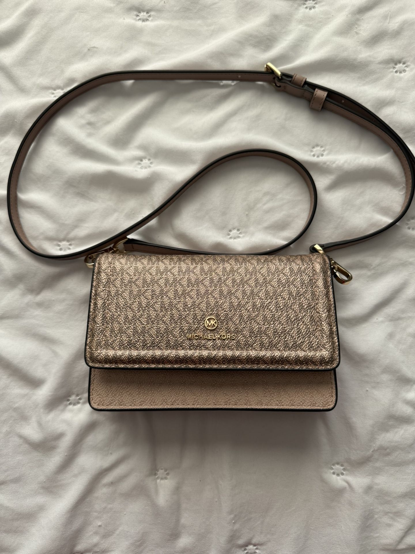 Beautiful MK crossbody in excellent condition. Gently used and super clean — no stains, tears, or damage. Details: • Rose gold MK signature pattern • Adjustable strap • Gold hardware • Fits phone, wallet, keys, and essentials