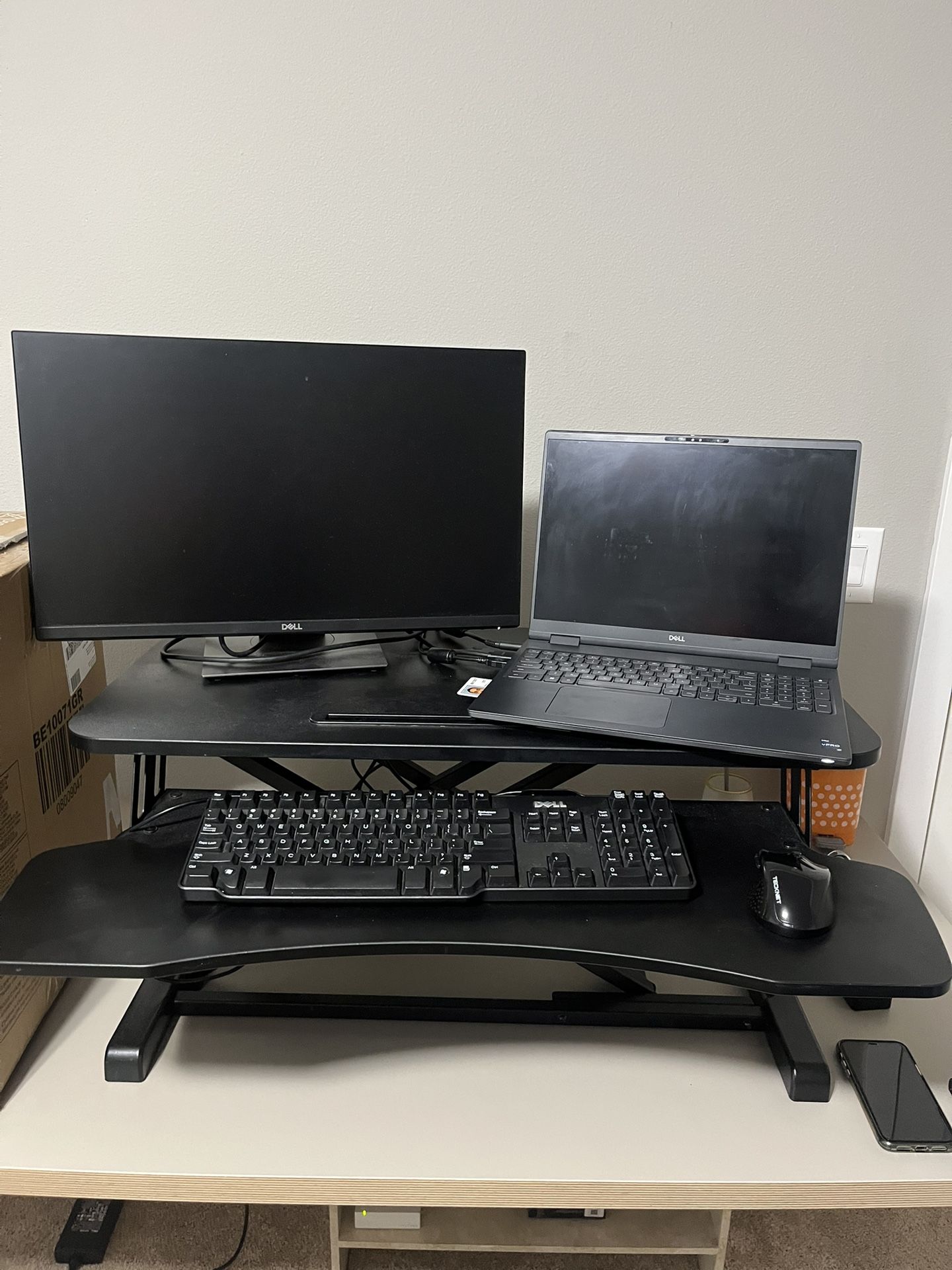Adjustable sit-stand desk converter in very good condition. Works smoothly and is sturdy. Easy to raise and lower and great for switching between sitting and standing while working. I’m back in the office full time, so I don’t need this anymore. No issues or damage. Selling the desk converter only. Monitor, laptop, keyboard, and other items are not included. Pickup near Apollo Elementary School. Exact pickup location will be shared once pickup is confirmed. Feel free to check before buying.