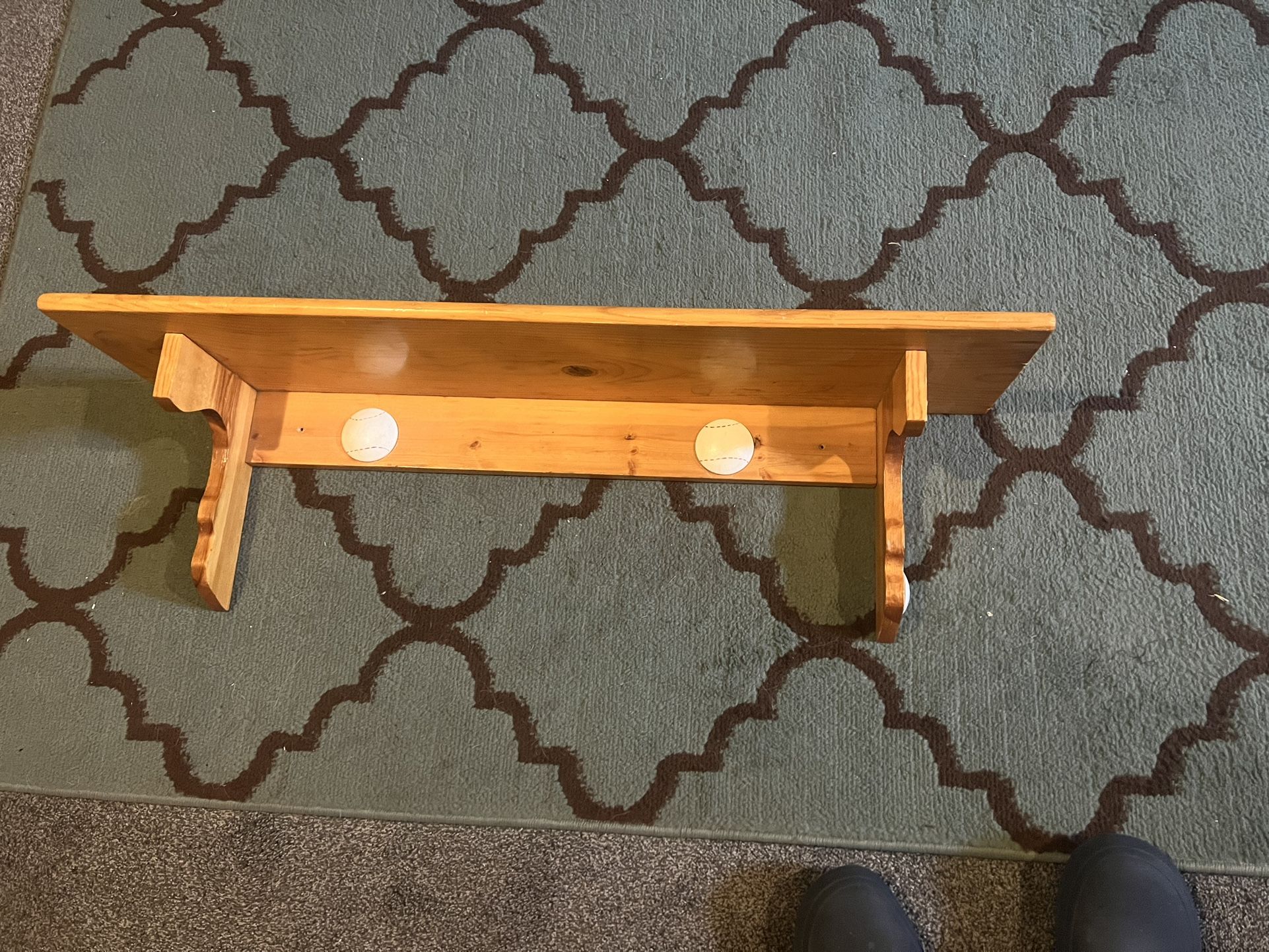 Baseball Themed Pine Wood Bookshelf Ledge