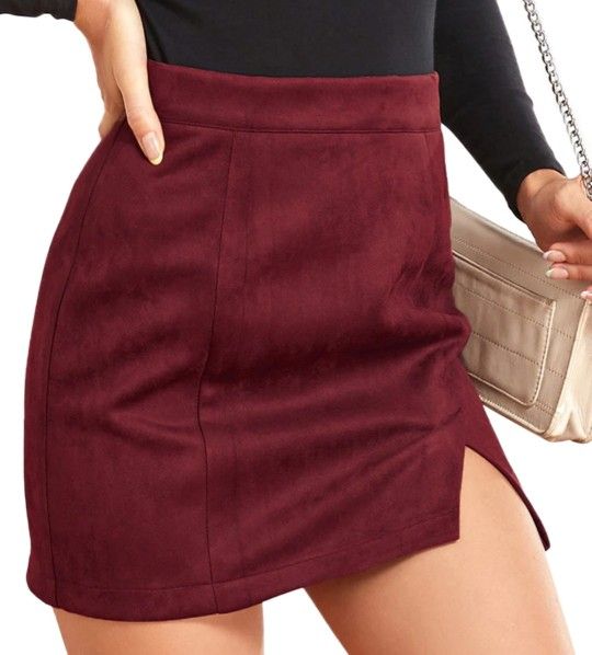 Medium Burgundy High Waist Mini Pencil Skirt