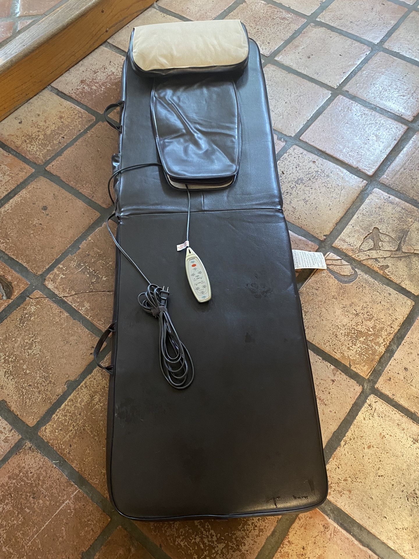 “HoMedics Therapist Select Masseur In-A-Box” Heated massage mat with remote control.