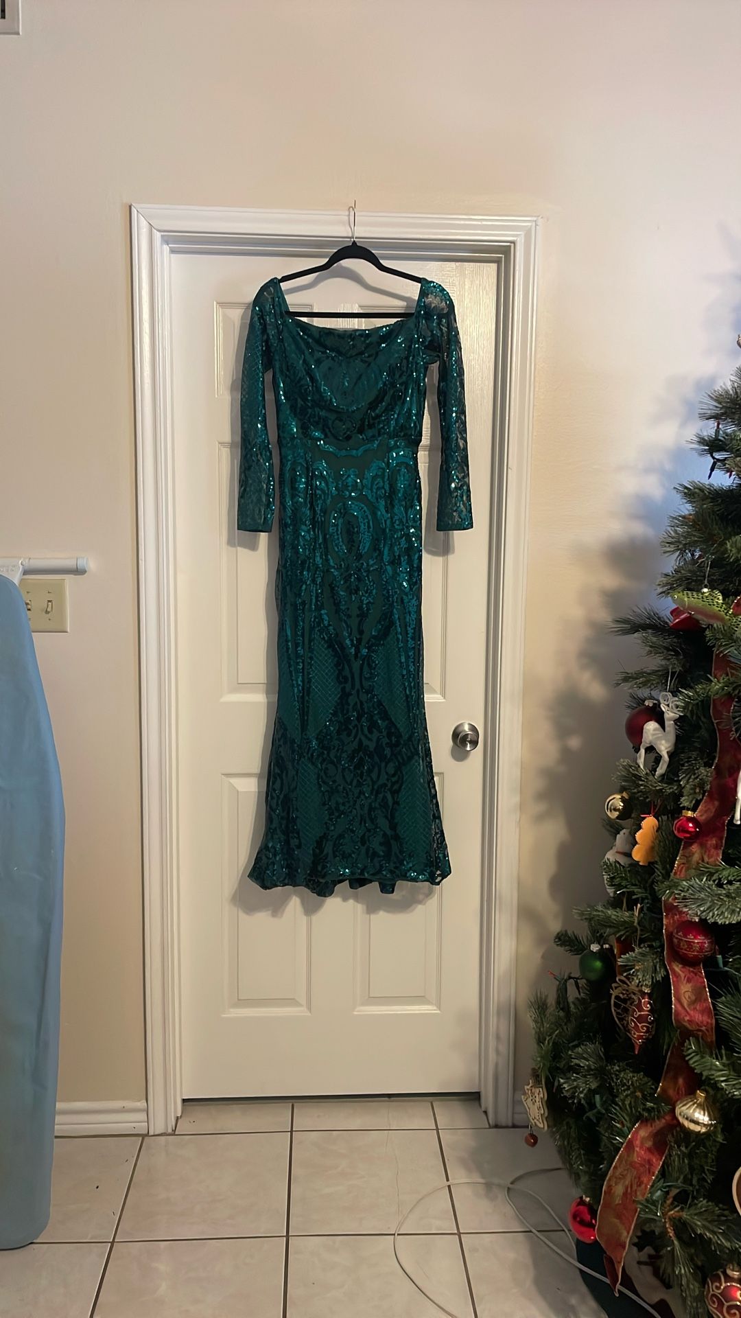 The dress overall stretches about 3 inches a little more at the hip. It was cut to 5’2” tall it’s got about 1 “ more that is hemmed in .