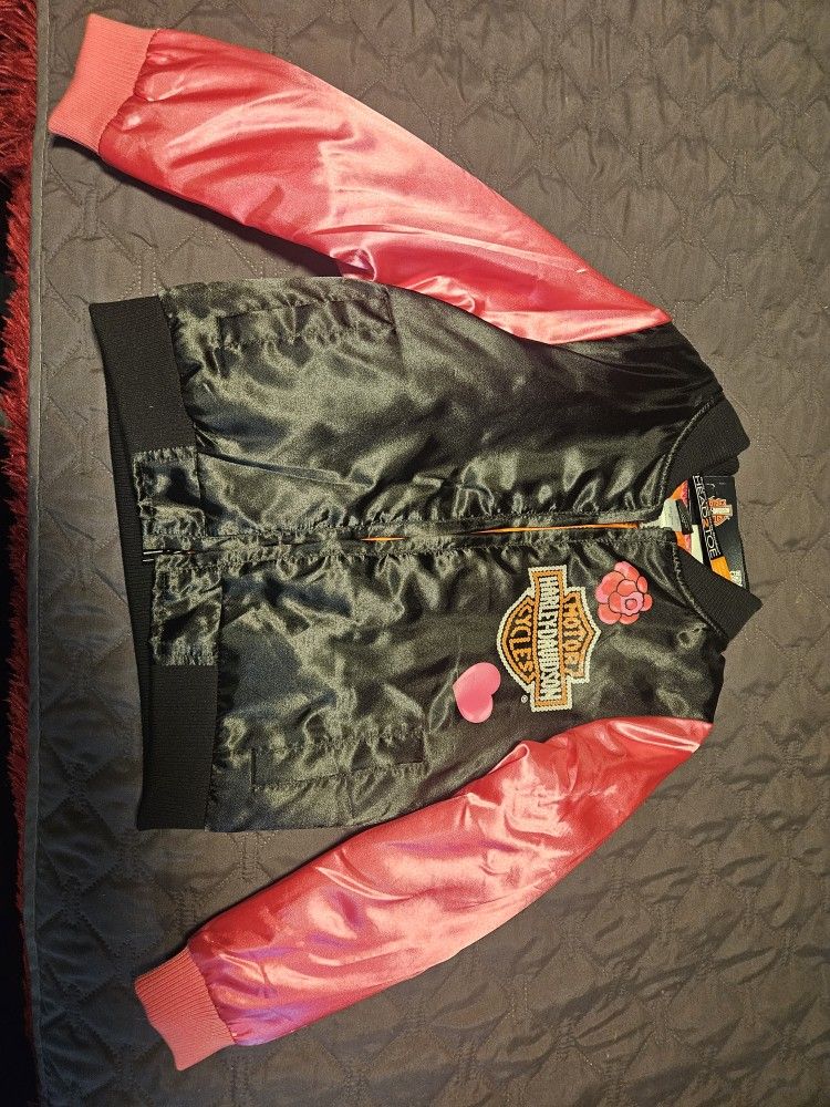 Kids Black and Pink Harley jacket. Never worn, tags intact. Size 6x. Start Christmas shopping early.