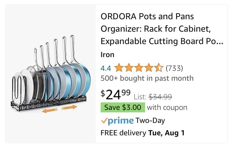 New Kitchen organizer for the plates, pots and pans. Assembled it for the pic and disassembled back in the box. Very easy to assemble. On sale at Amazon for 24.99 without the tax.
