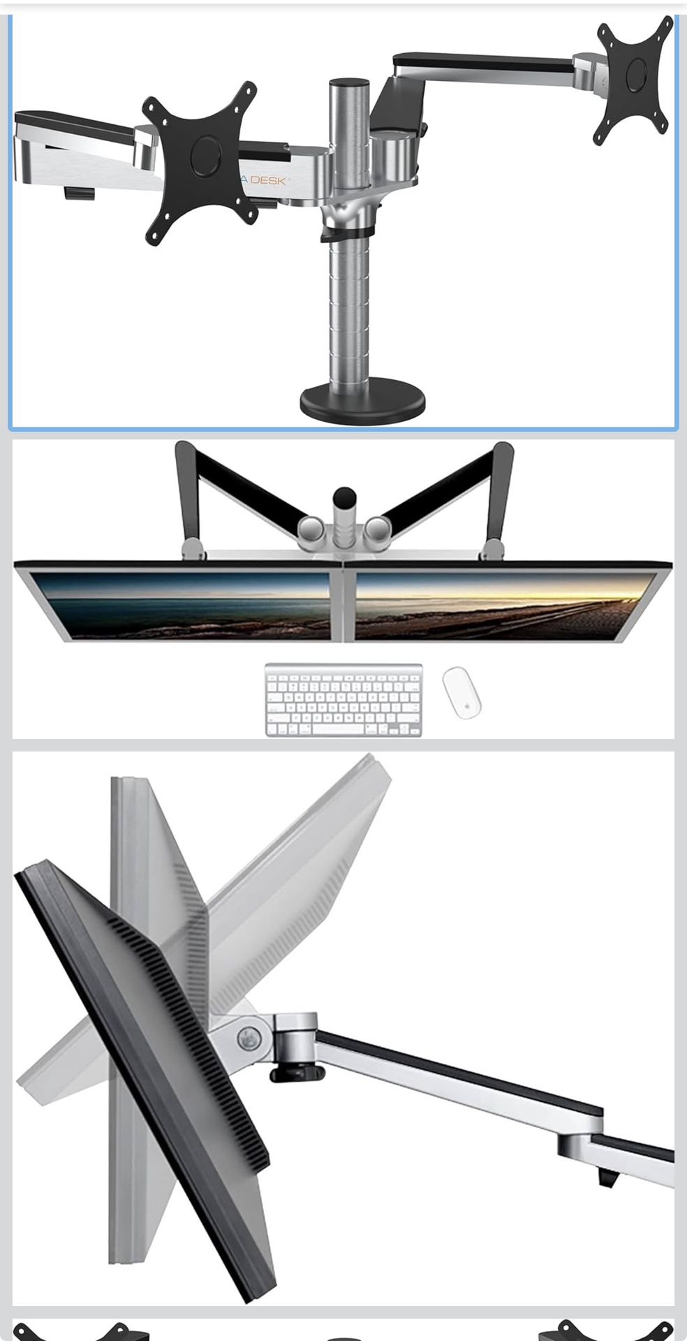 VERSADESK OmniView Dual Monitor Stand - Height Adjustable Arms for 24"-27" Screens - Desk Mount with 360° Rotation - VESA