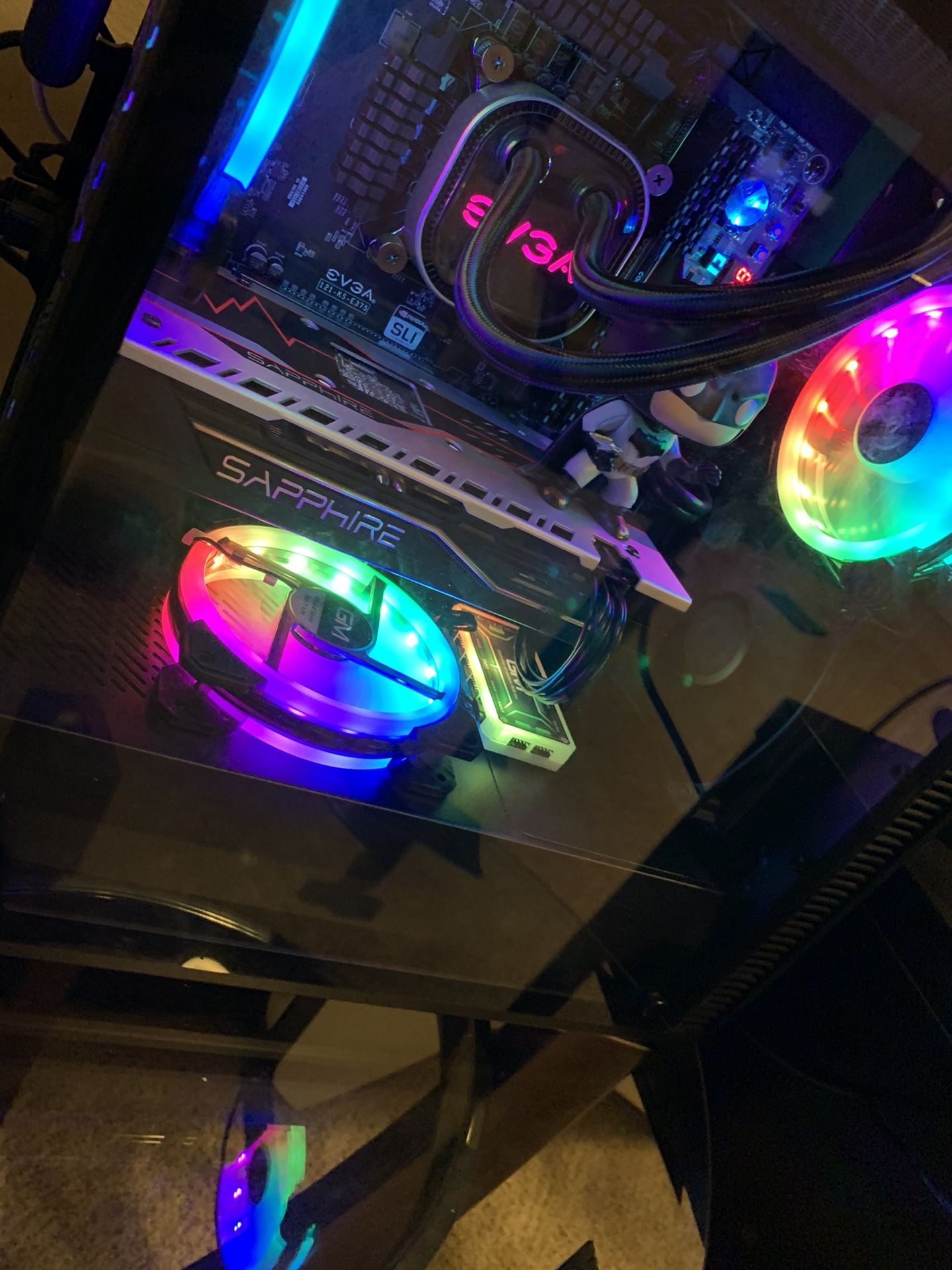 All built by myself comes with pc and drives no windows key and no storage. If you have a ssd I can install it for you. Sapphire amd rx570 gpu, i5 9400kf, fractal design mini c design, 16 g of ram, ev3a water cooling block , built in WiFi. Ready to go! Taking the windows key and storage for my use. Runs any game like a beast!