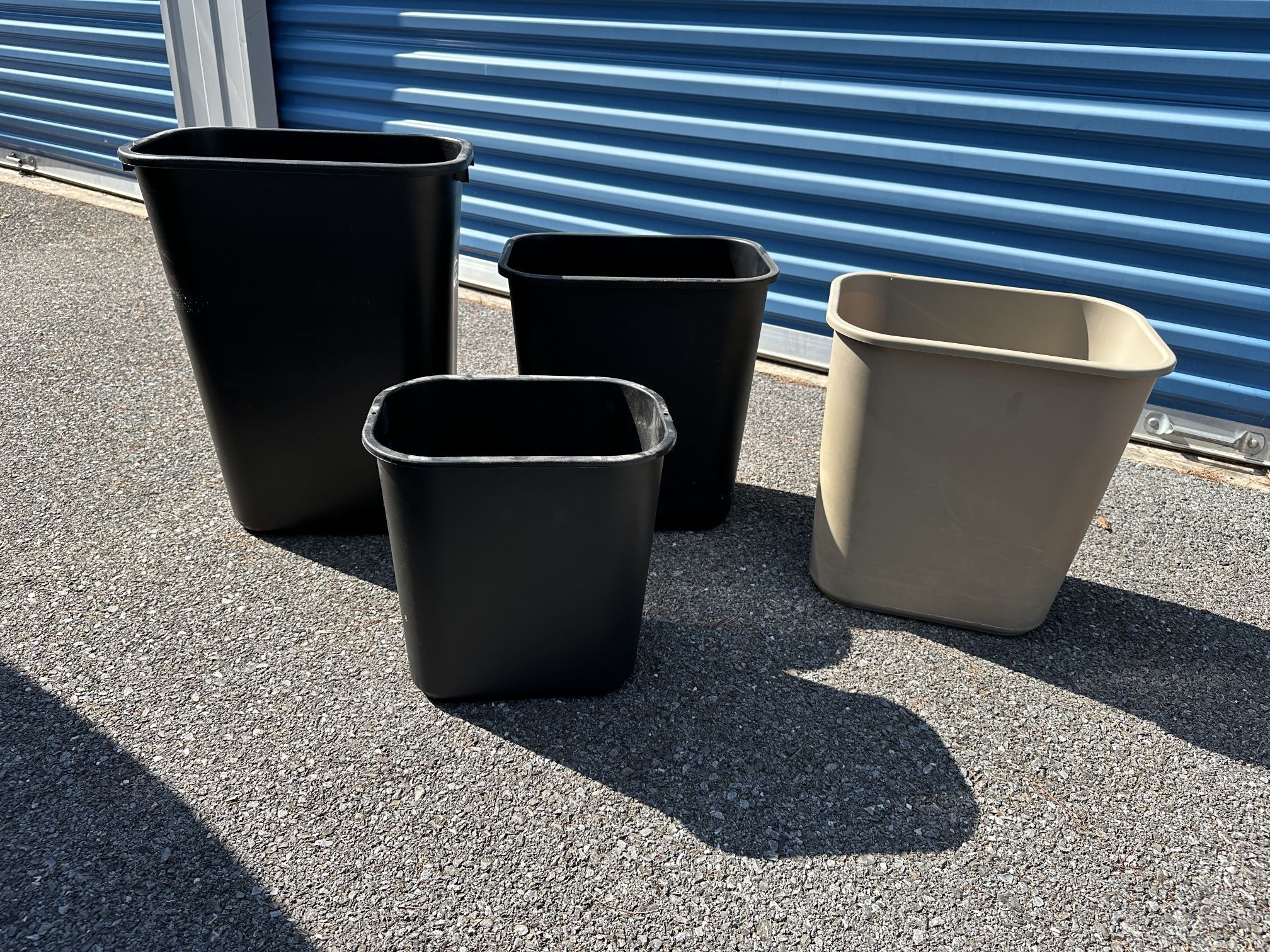 4 Assorted Sized Plastic Trash, Waste Can Bins