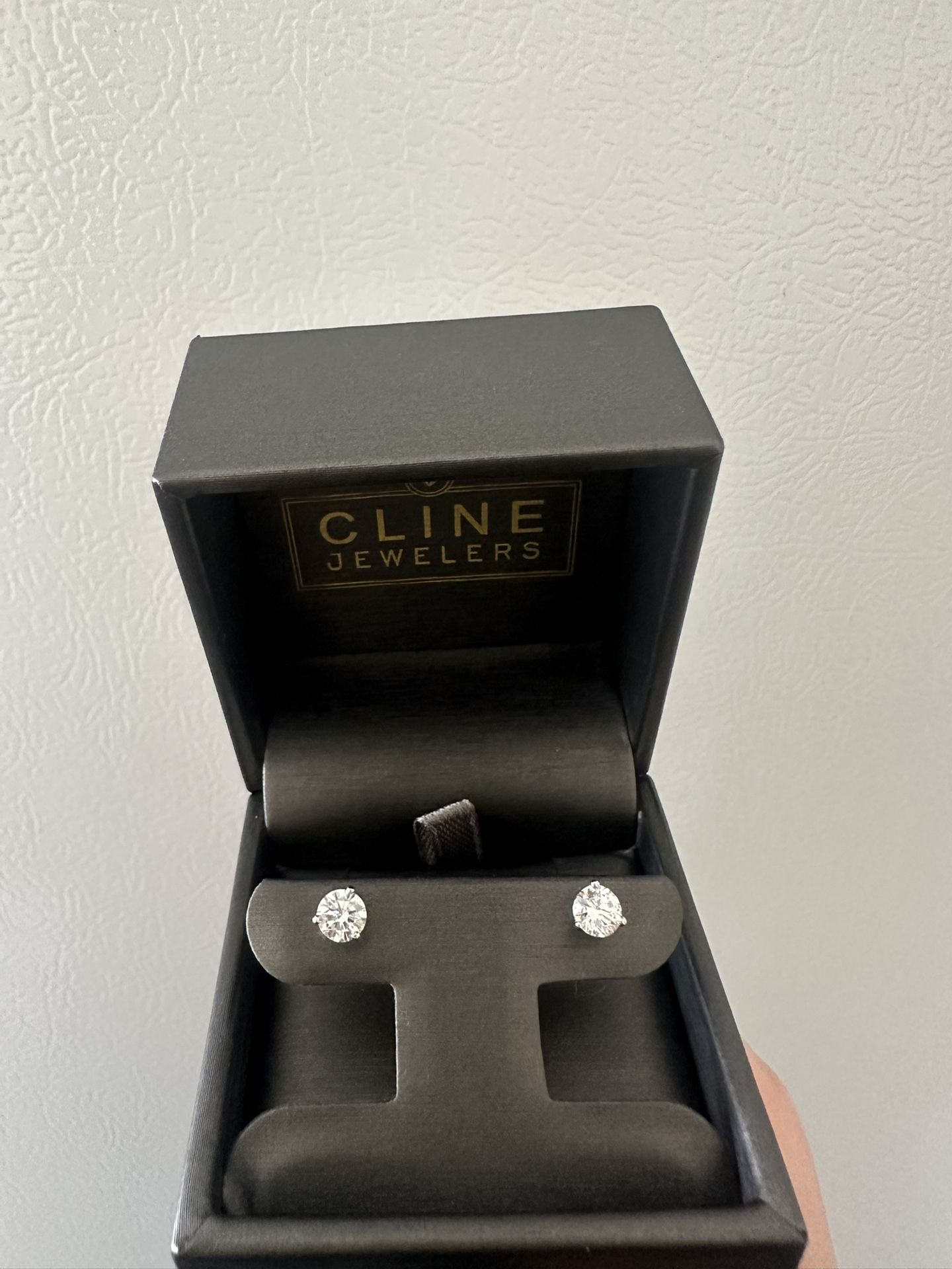 Brand new, never worn or tried on 1.0ctw Lab Grown Diamond Studs, set in three-prong 14k White Gold. From Cline Jewelers. Comes with original packaging, it’s perfect for a Holiday gift!