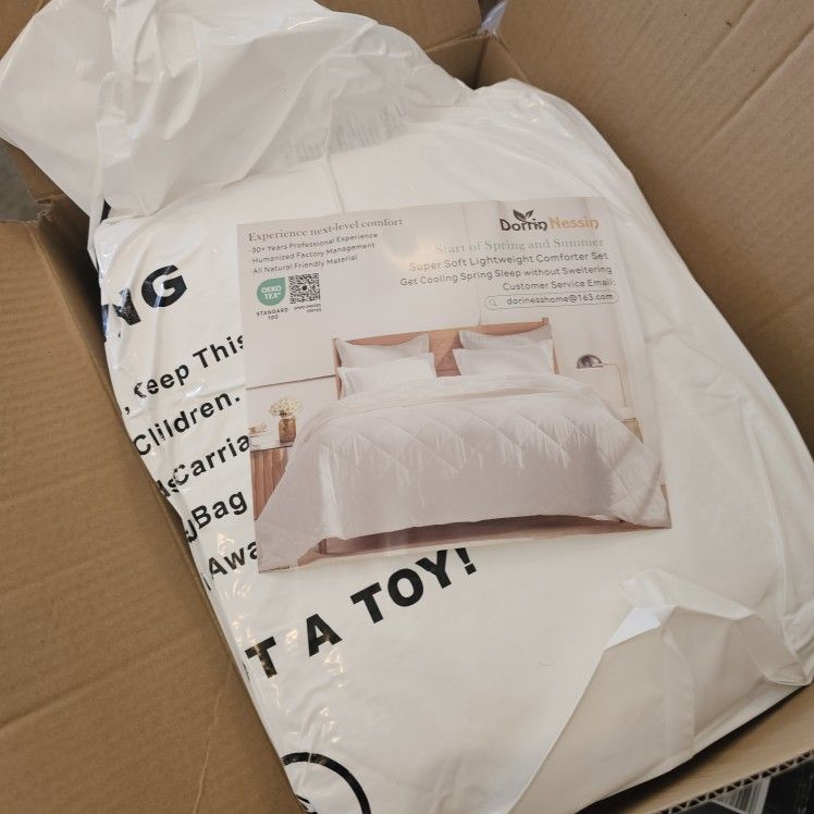 90x90/ Queen comforter set $40 1white 1Black 2 Twin size white $20 each Opened one to see actual size