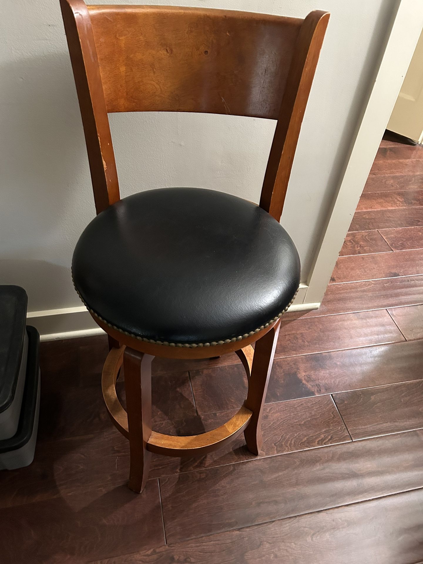 2 on hand black faux leather padded seat Nailhead trim Solid wood