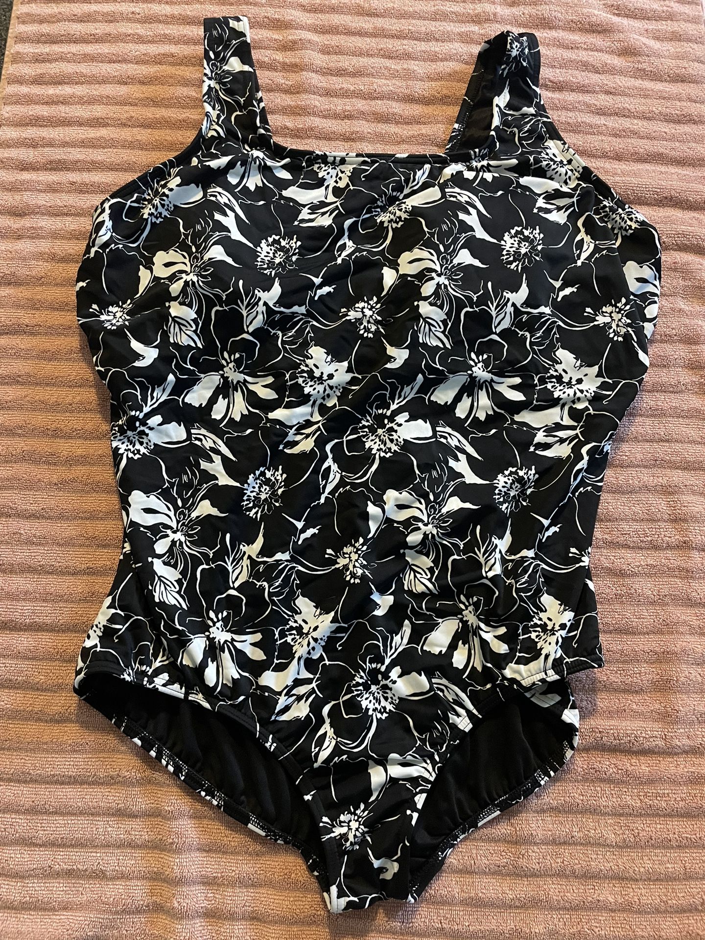 Black and white floral one piece swimsuit. Brand Lands End size 22.