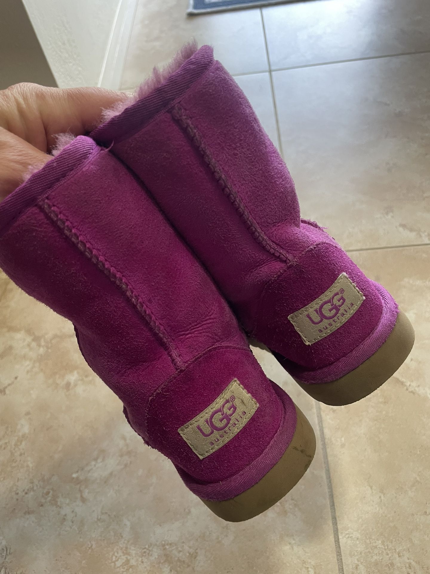 Barely used, size 2, girls magenta UGGs 25$