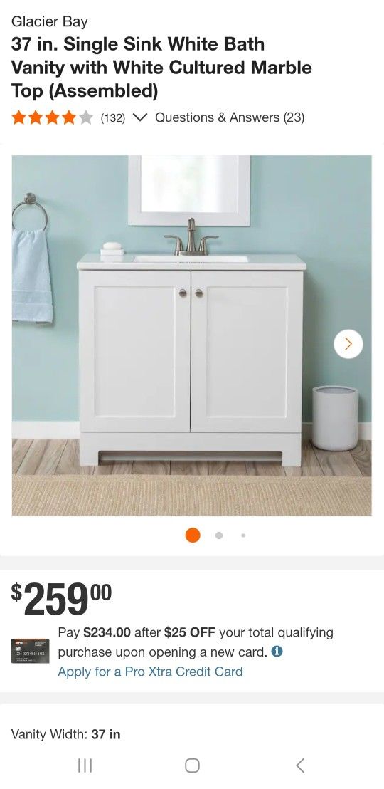 Brand new in the box. 37 in Bathroom vanity combo in white. With white top.