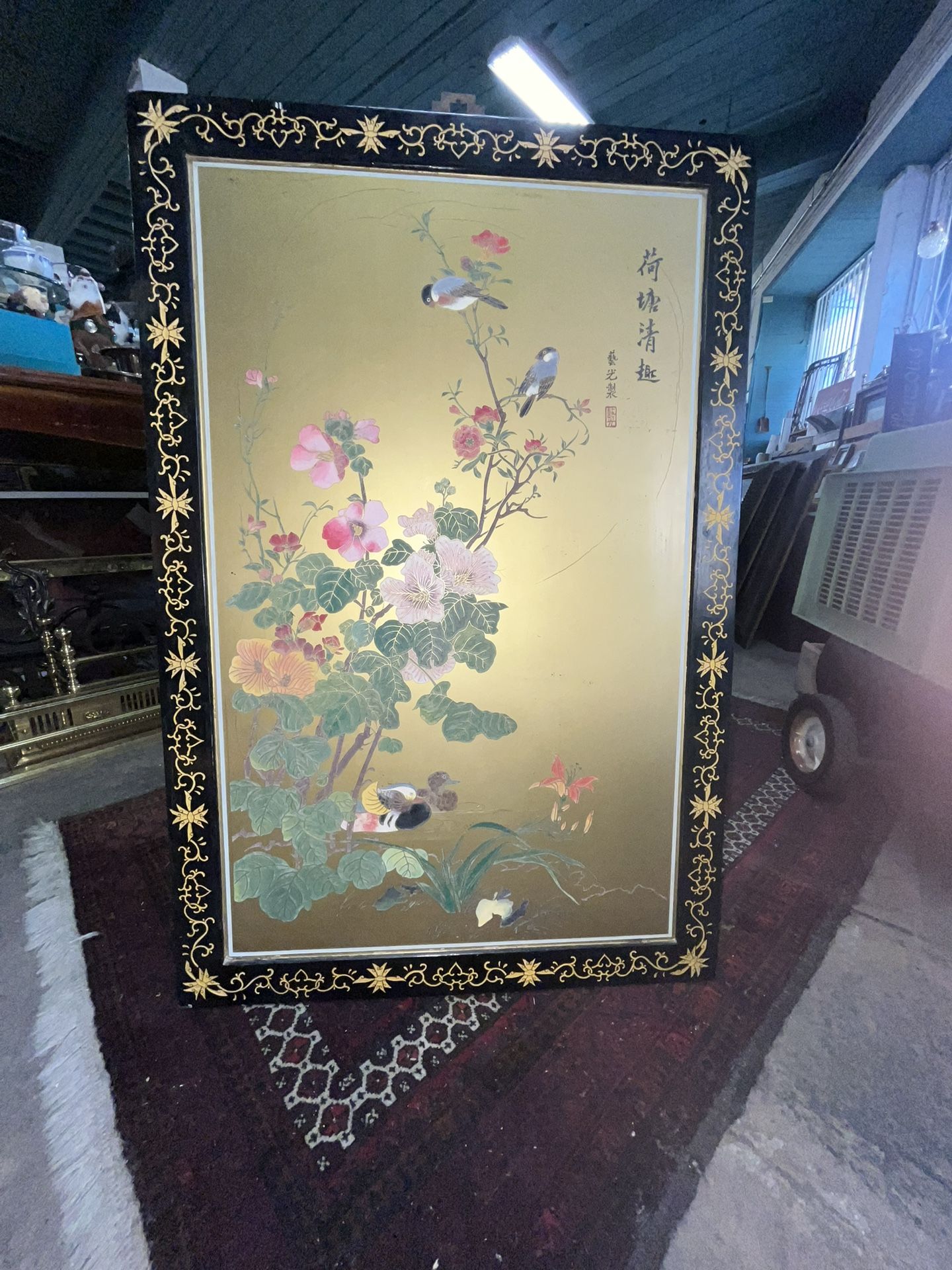 Vintage Asian Art Wall Hanging Of Birds &Flowers